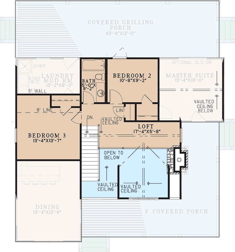The modest overall heated area, combined with efficient circulation and elimination of wasted corridors, makes this home more economical to build and operate—yet visually expansive and comfortable.