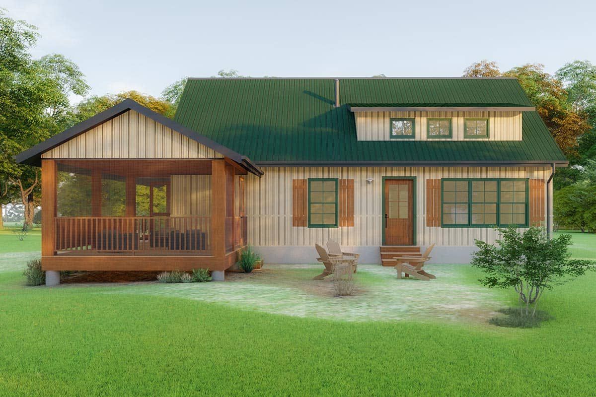 For those seeking a cottage retreat, guest home, or simply a compact but stylish full-time residence, this plan delivers character without overreach. The large screened porch elevates the outdoor living experience; the elegant interior layout maximizes comfort; and the single main bedroom keeps maintenance low yet hospitality high.If you value single-level ease, outdoor connection and rustic style in a modest footprint, this plan strikes a rare balance—beautiful, smart and thoroughly livable.“`11