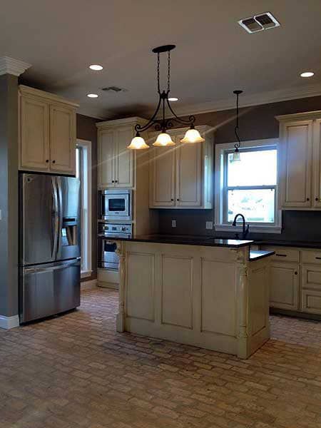 A large island provides seating and double-function as prep area and gathering spot. The walk-in pantry gives storage flexibility that many homes this size don’t offer. 9