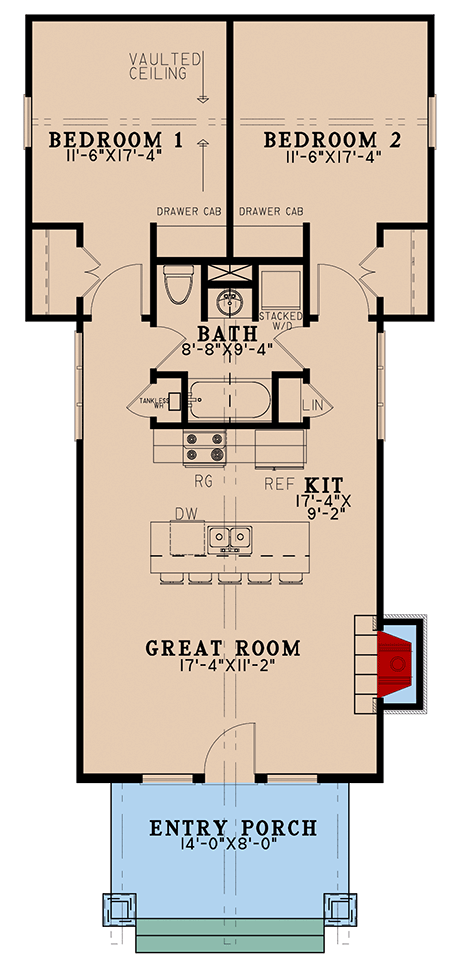 With its 2×4 wall framing and compact layout, this home offers a lower-cost path to well-designed living. The vaulted ceilings elevate the visual experience without requiring a second story or complicated roof structure.