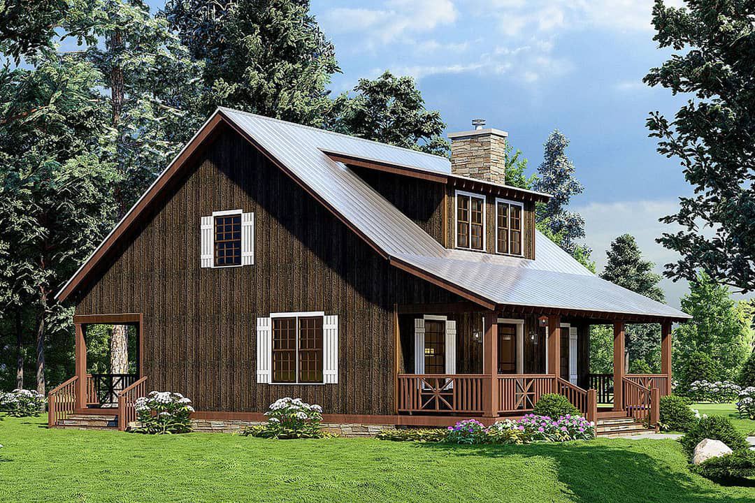 This plan is ideal for those seeking a comfortable, well-designed cabin or primary home with character and efficient use of space. The generous living volume, combined with a modest footprint and flexible layout, gives it real appeal.