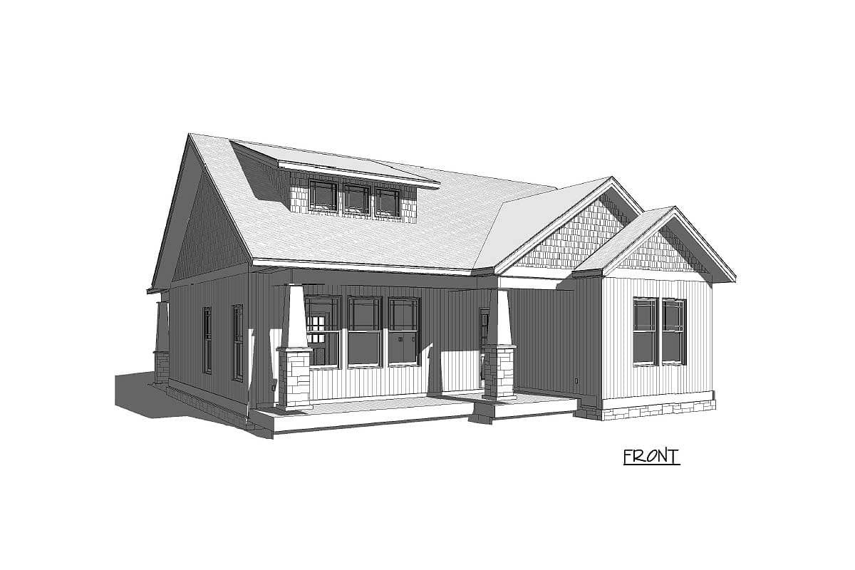 This petite Craftsman bungalow blends distinctive style and practical layout in an approachable size. With two bedrooms, two baths, and that signature front porch, it gives homeowners the aesthetics of Craftsman architecture without exaggerated size.