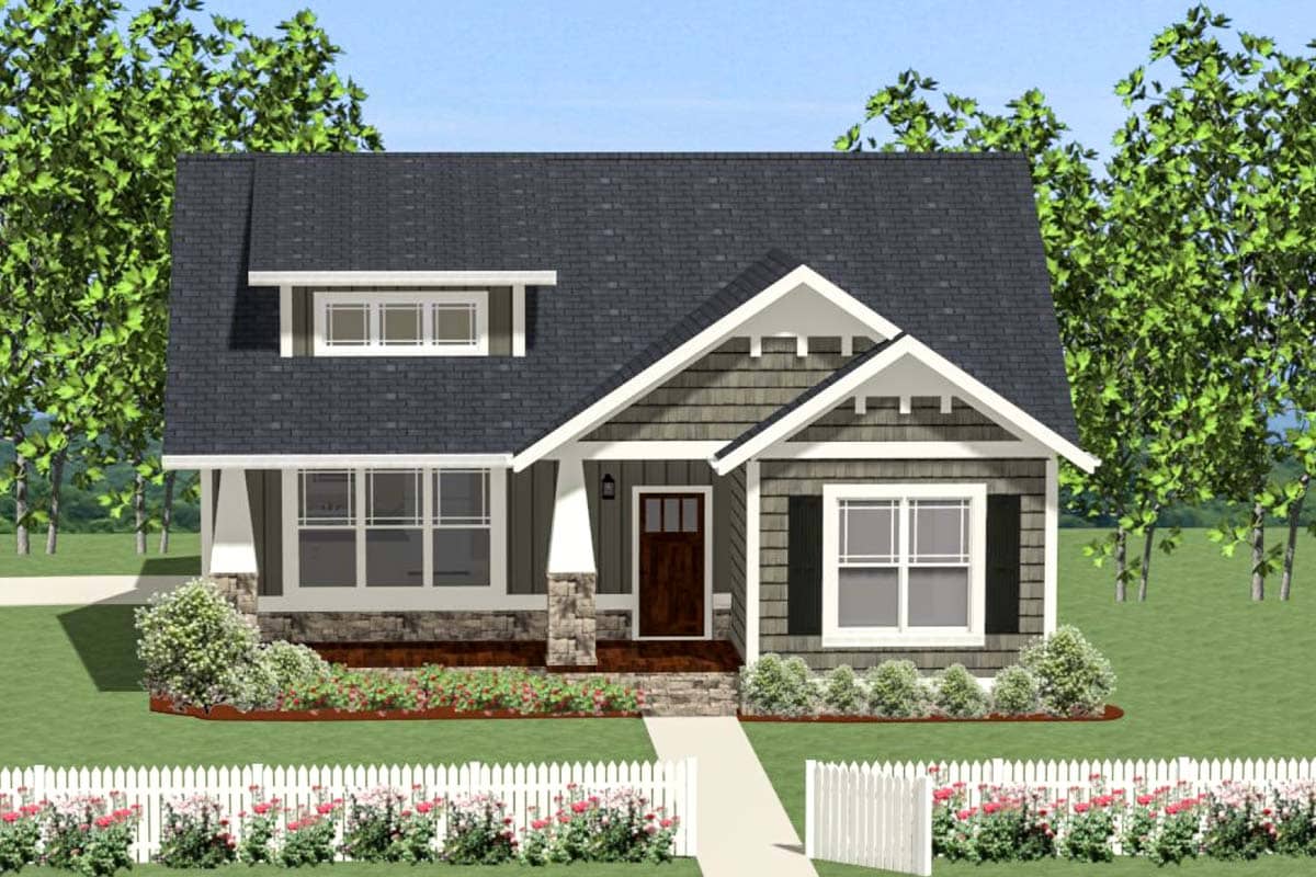 This petite Craftsman bungalow blends distinctive style and practical layout in an approachable size. With two bedrooms, two baths, and that signature front porch, it gives homeowners the aesthetics of Craftsman architecture without exaggerated size.