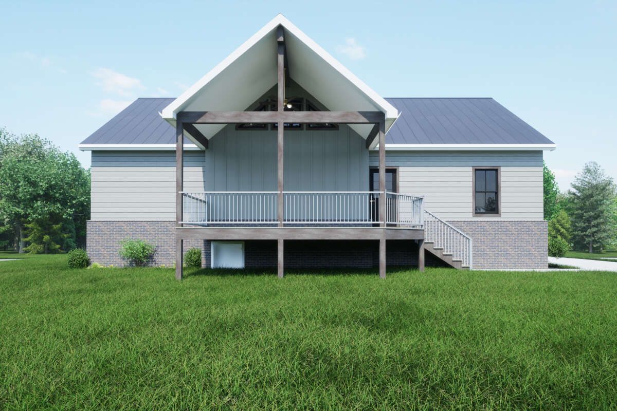 The generous front porch (~177 sq ft) provides a comfortable outdoor room with overhead shelter—ideal for morning coffee or welcoming arrival. 7