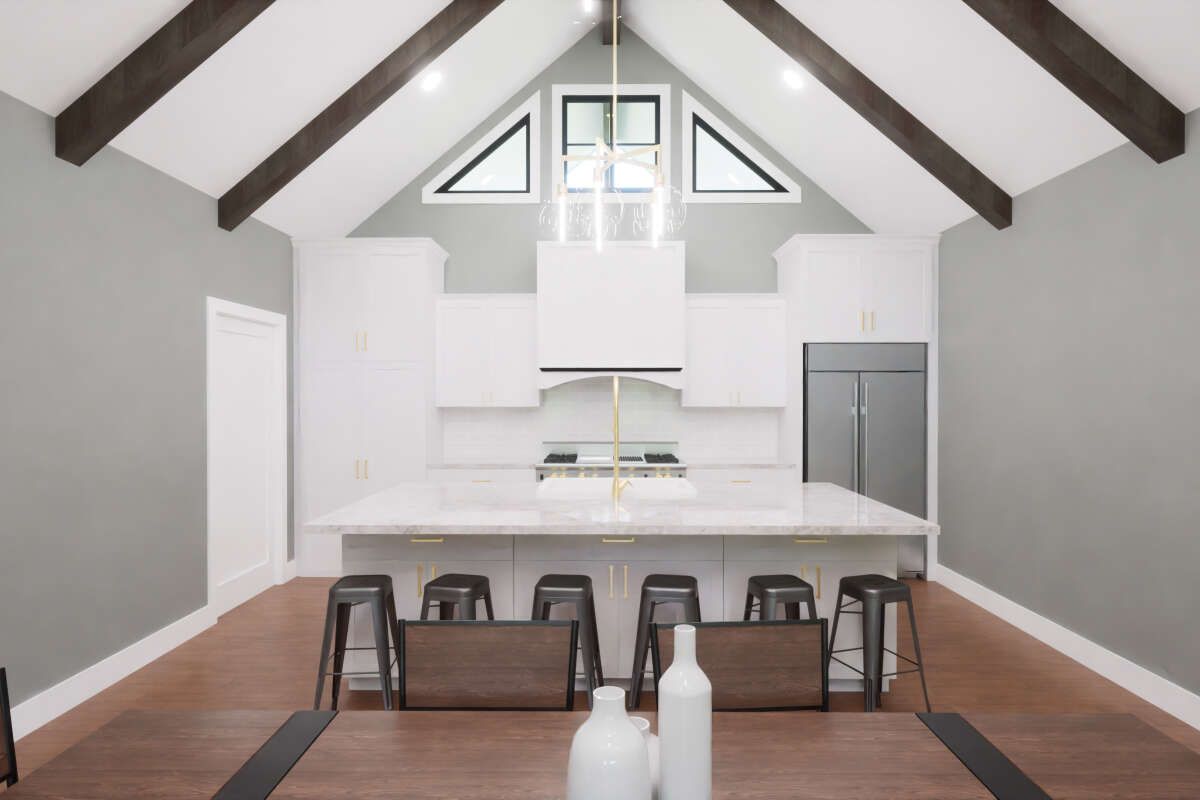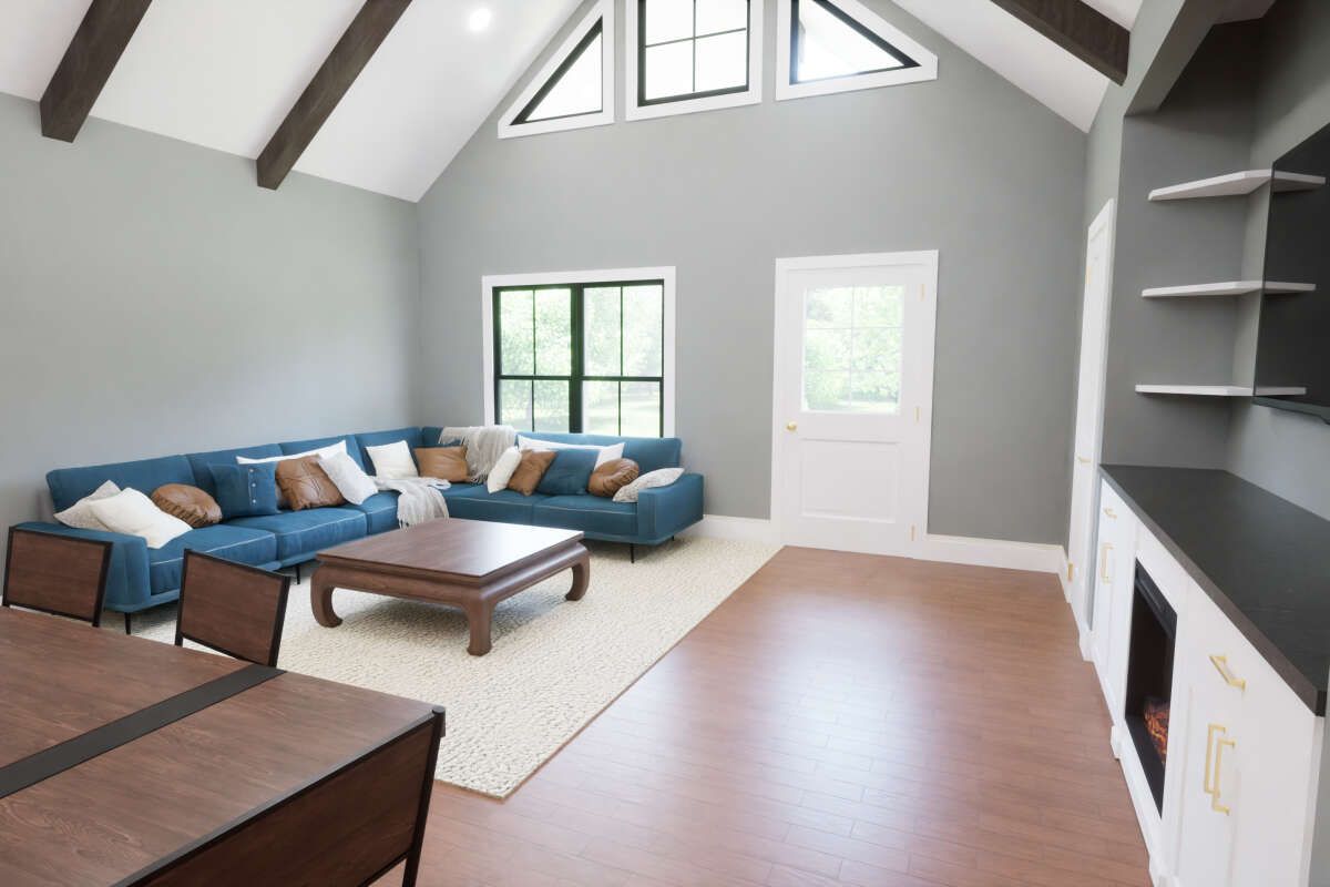 The great room features a vaulted or open ceiling (depending on variant) and becomes the heart of the home. A fireplace may anchor the living space, lending warmth and focal interest. 6