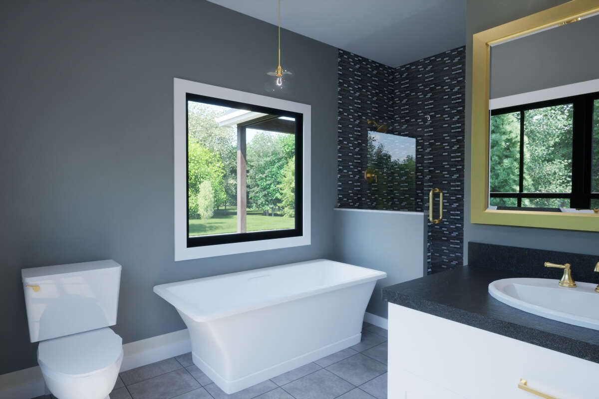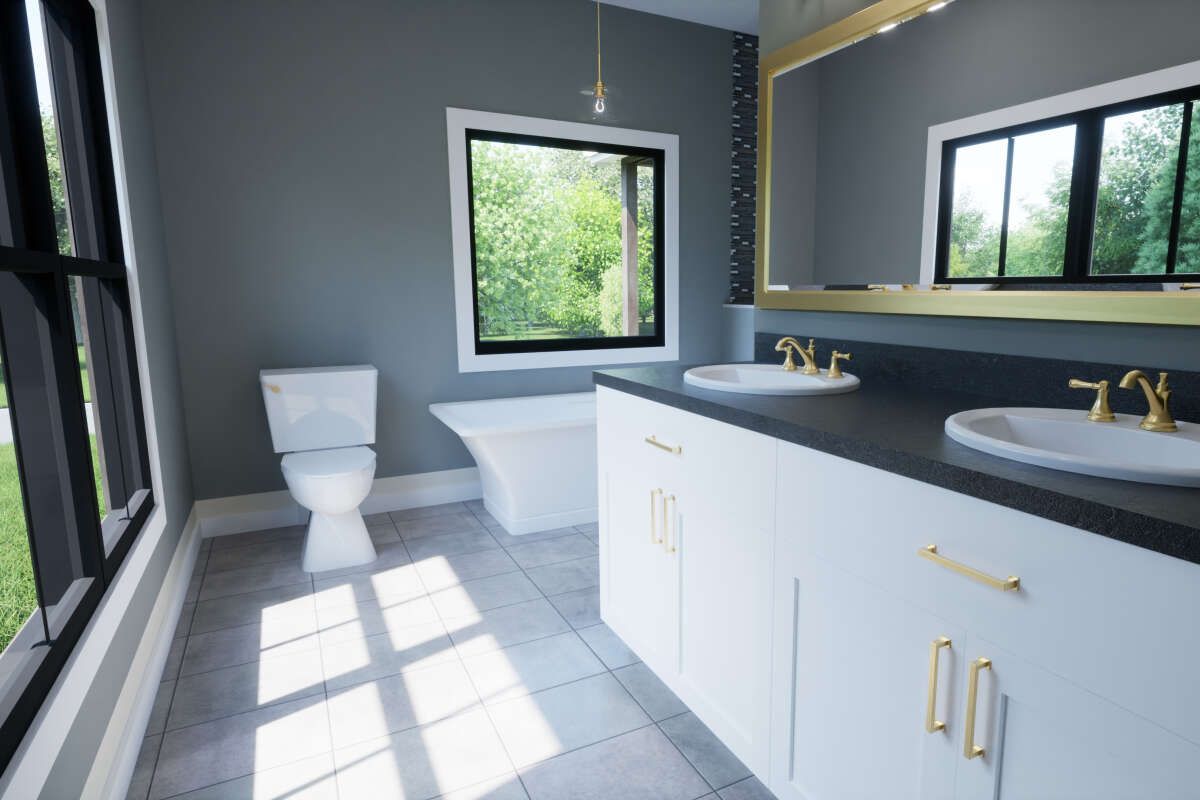 This two-bath arrangement in a moderate size home enhances flexibility for families or guests, without consuming unnecessary square footage.