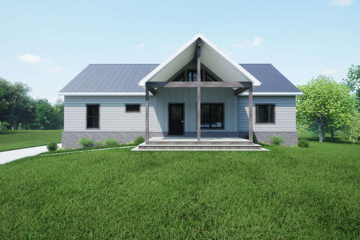 The generous front porch (~177 sq ft) provides a comfortable outdoor room with overhead shelter—ideal for morning coffee or welcoming arrival. 7