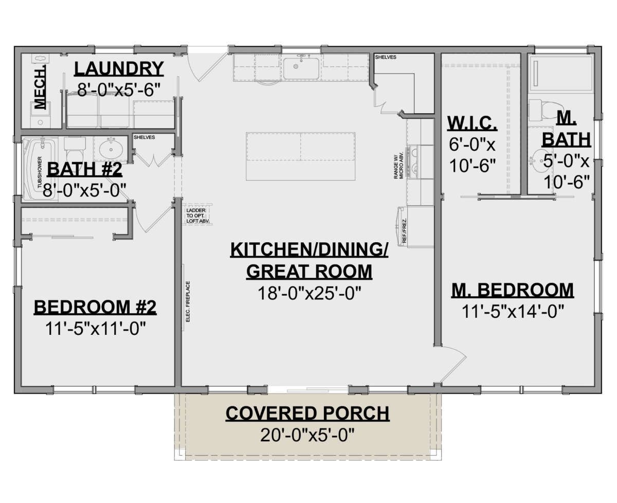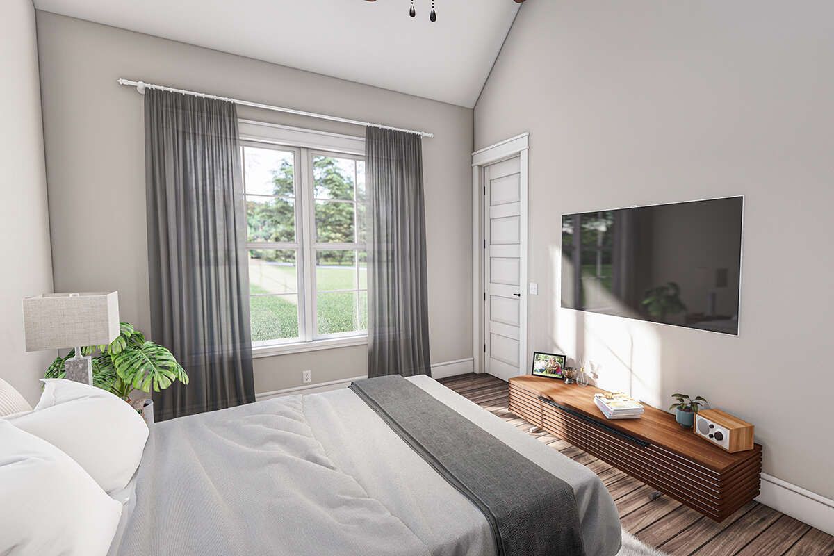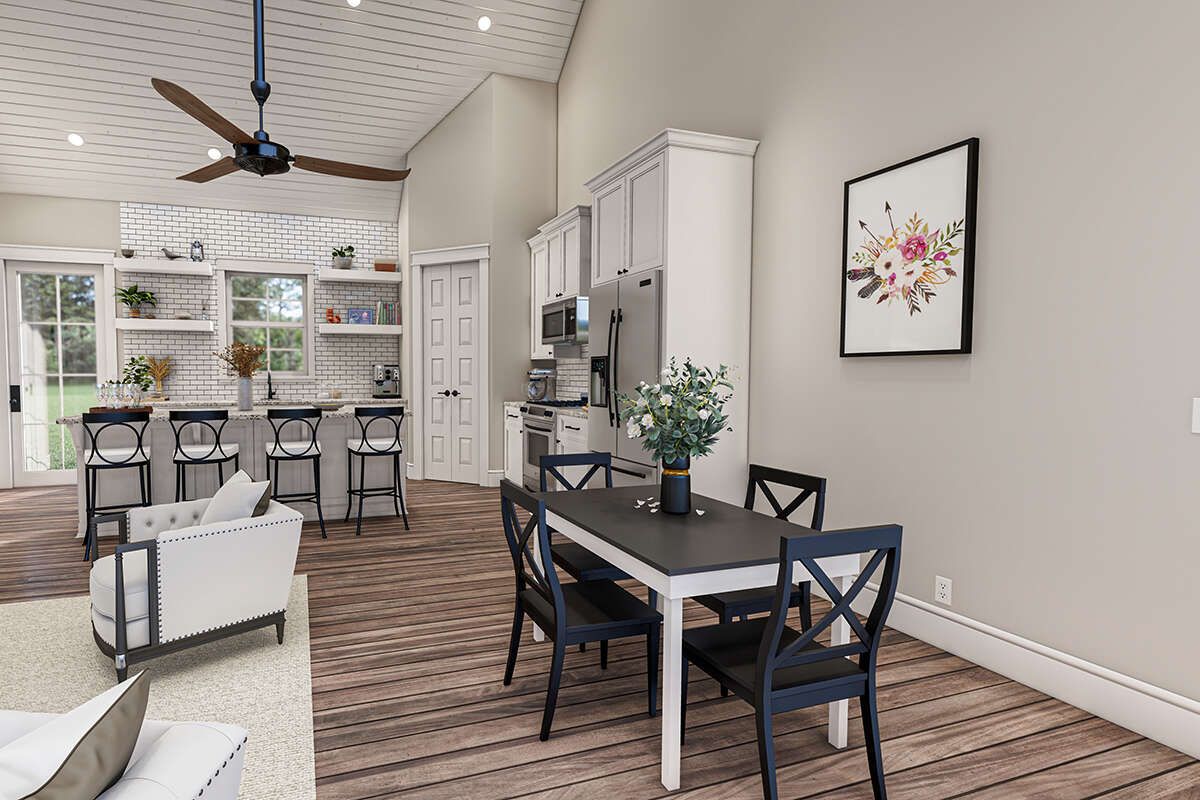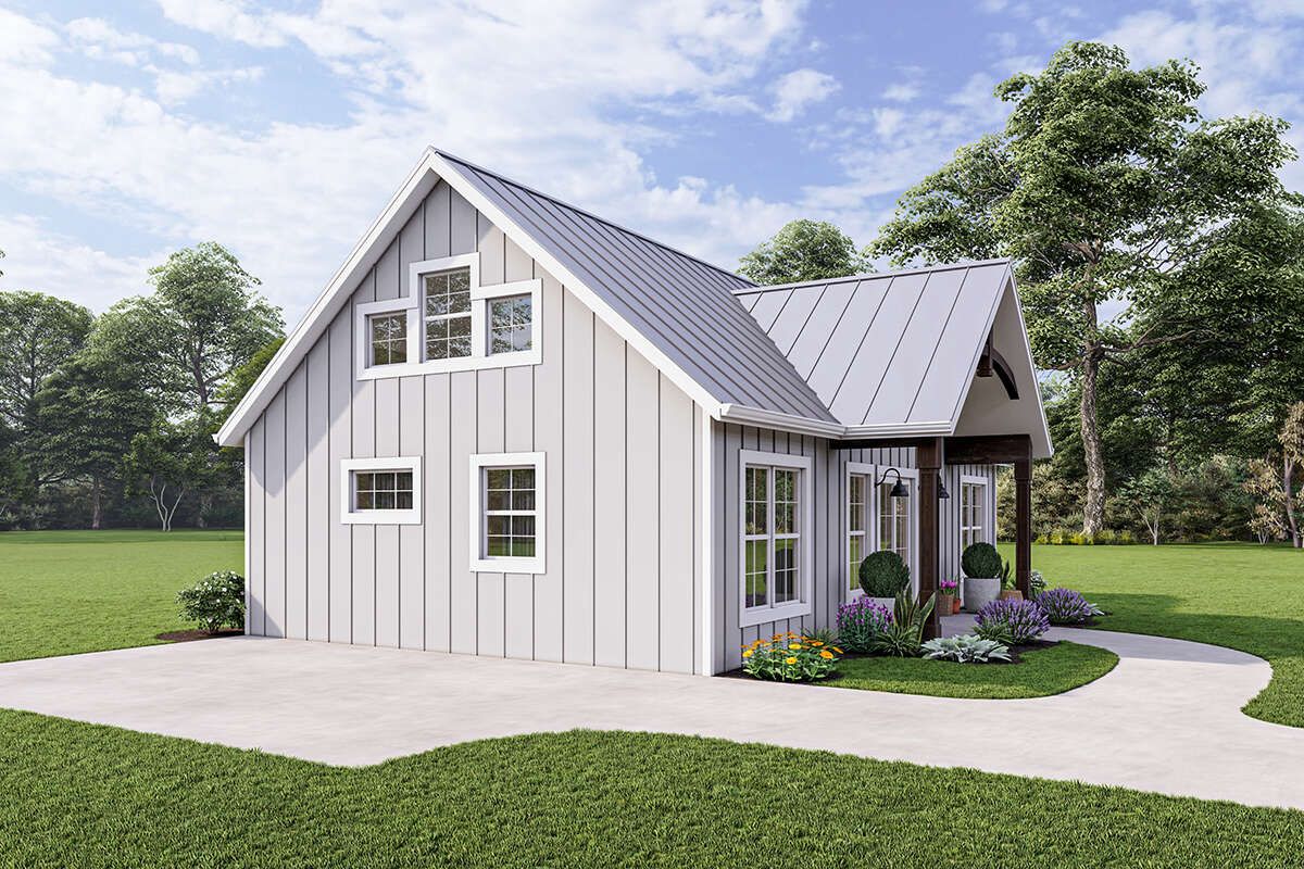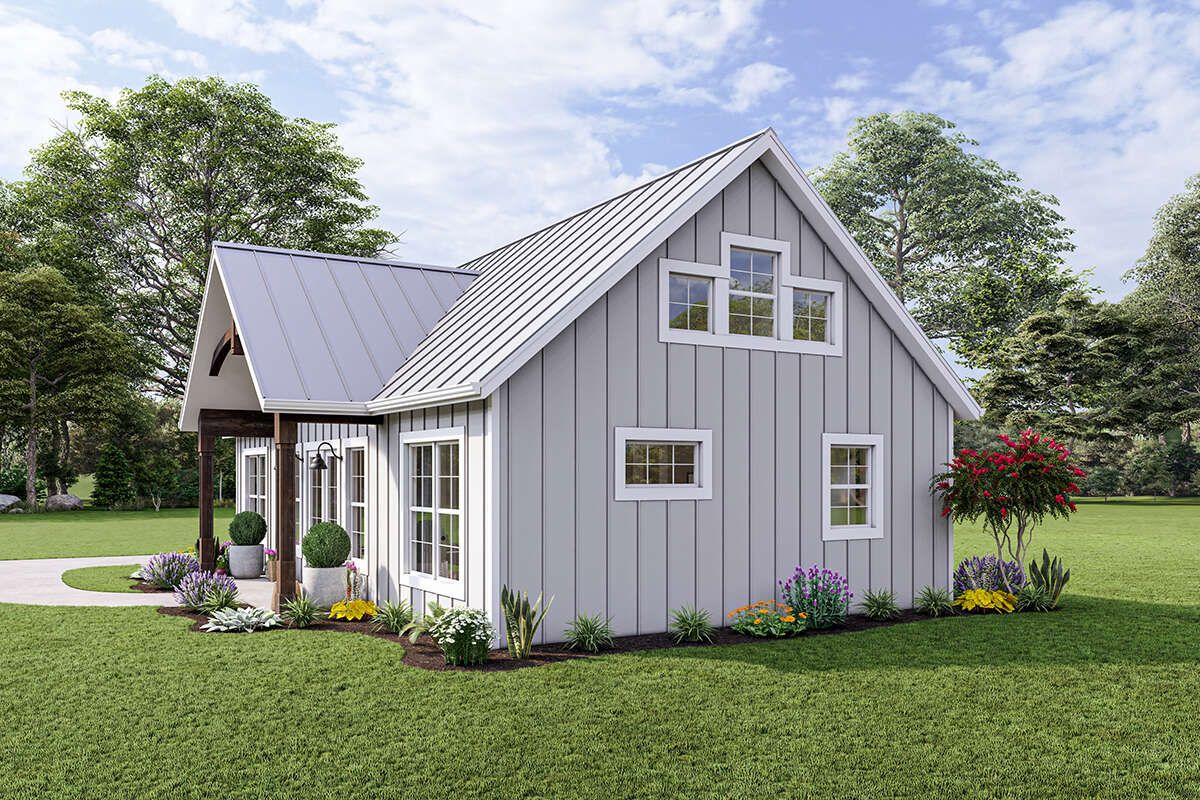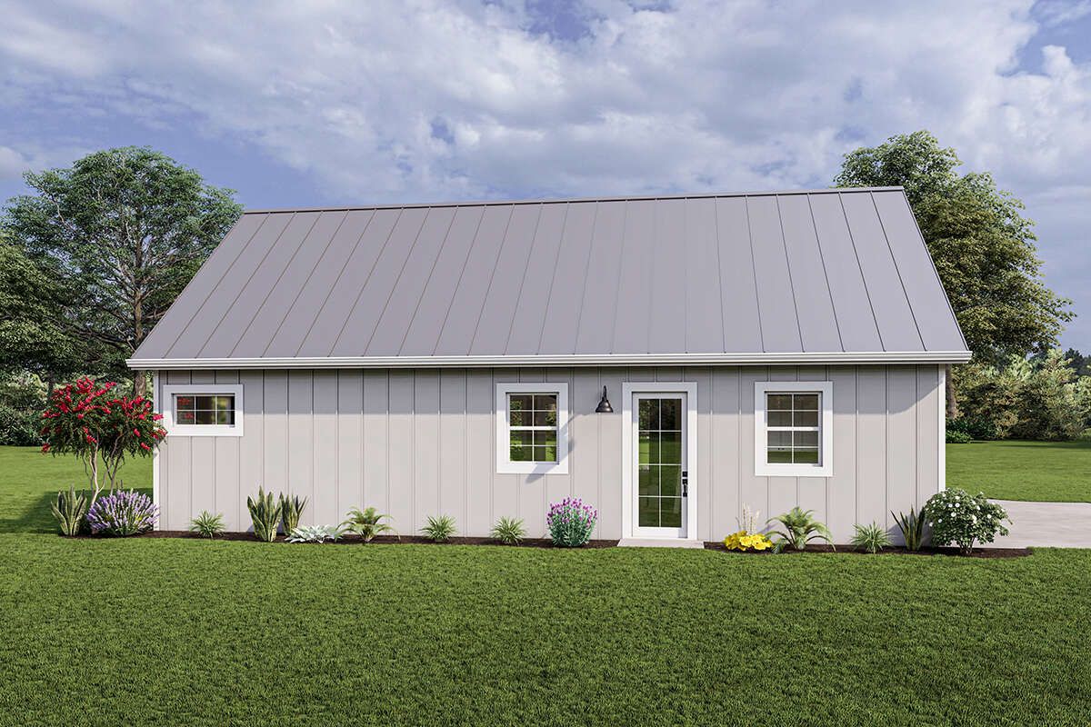This modern farmhouse plan provides an exceptional blend of style and functionality in a compact, manageable size. With two bedrooms and two baths, it accommodates everyday living comfortably without excess.