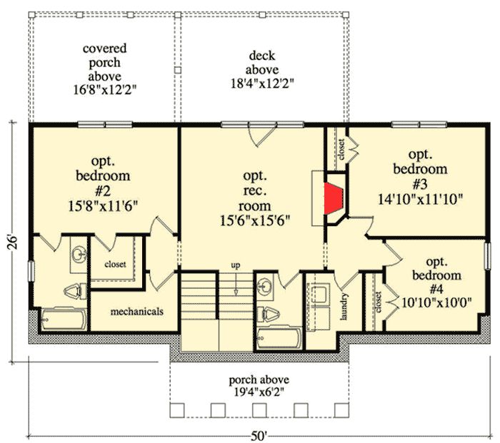 The layout clusters core zones (kitchen, bath, living) to reduce mechanical runs. The optional basement adds adaptability without sacrificing the footprint. The moderate roof pitch, compact width and overall character of the design help maintain budget and build-time control.
