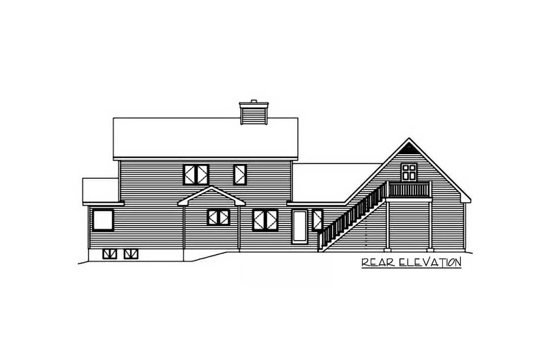 With exterior walls framed at 2×4 construction (upgradeable to 2×6) and a moderate ridge height of 26′-8″, the plan balances volume and construction economy. 10