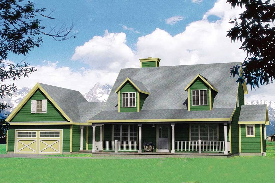 A covered front porch with dormers creates welcoming curb appeal and invites outdoor relaxation. 2