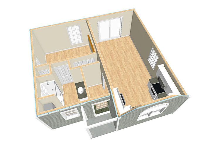 This efficiently designed one-bedroom home offers about **528 square feet** of living space, making it ideal as an accessory dwelling unit (ADU) or a compact standalone residence.