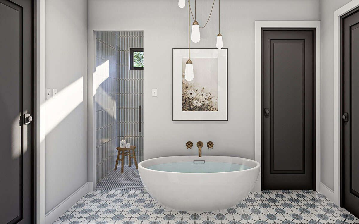 The plan’s one-story, 2×6 framed design simplifies construction and insulation challenges. With an 8′-0″ first-floor ceiling (as specified) 5 the home remains efficient to heat and cool, while offering a comfortable volume for living.
