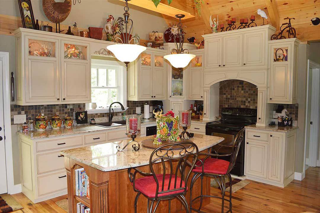 The main level opens into a vaulted great room (vault reaches up to 18′ at the center) with minimal interior walls, allowing for an expansive open feel across the living, dining and kitchen zones. 4
