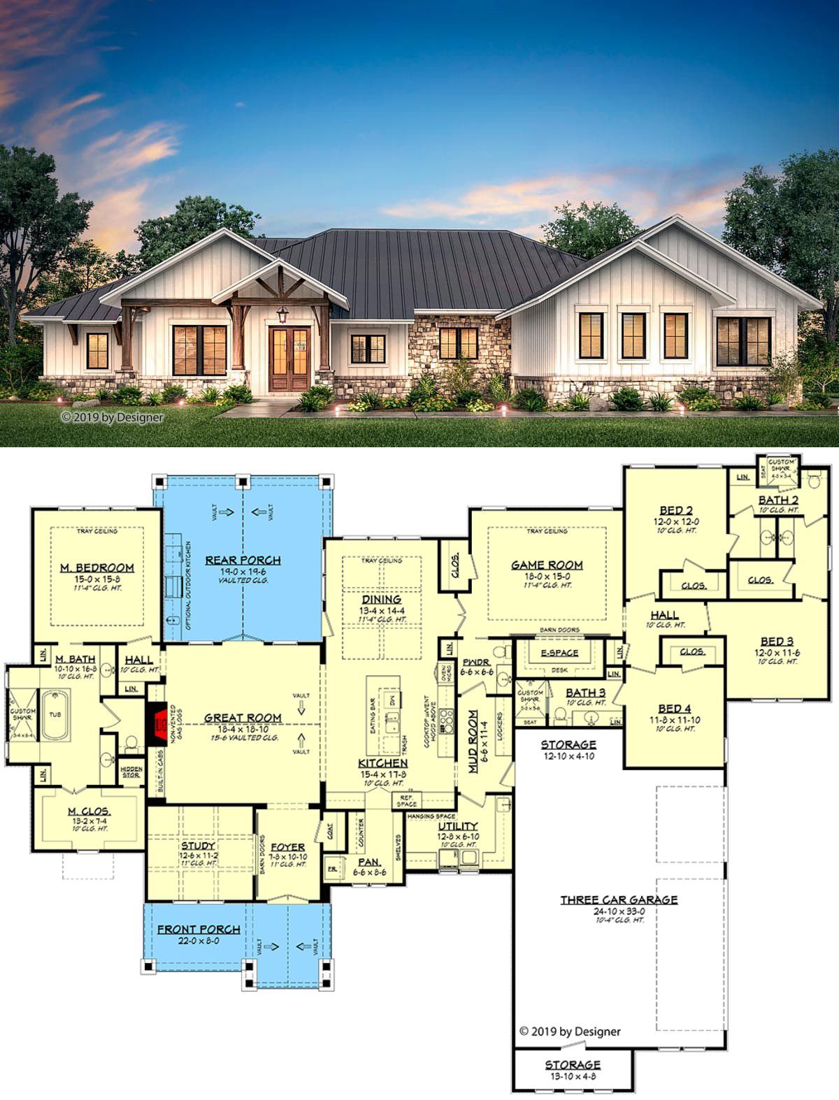 Three-car garage accommodates vehicles, storage, maybe even that motorcycle you keep saying you’ll ride someday. Laundry and mudroom zones are placed smartly (i.e., not tucked in the basement under a staircase). Option for basement or walk-out storage? Yep, the plan hints at that too for future expansion. 6