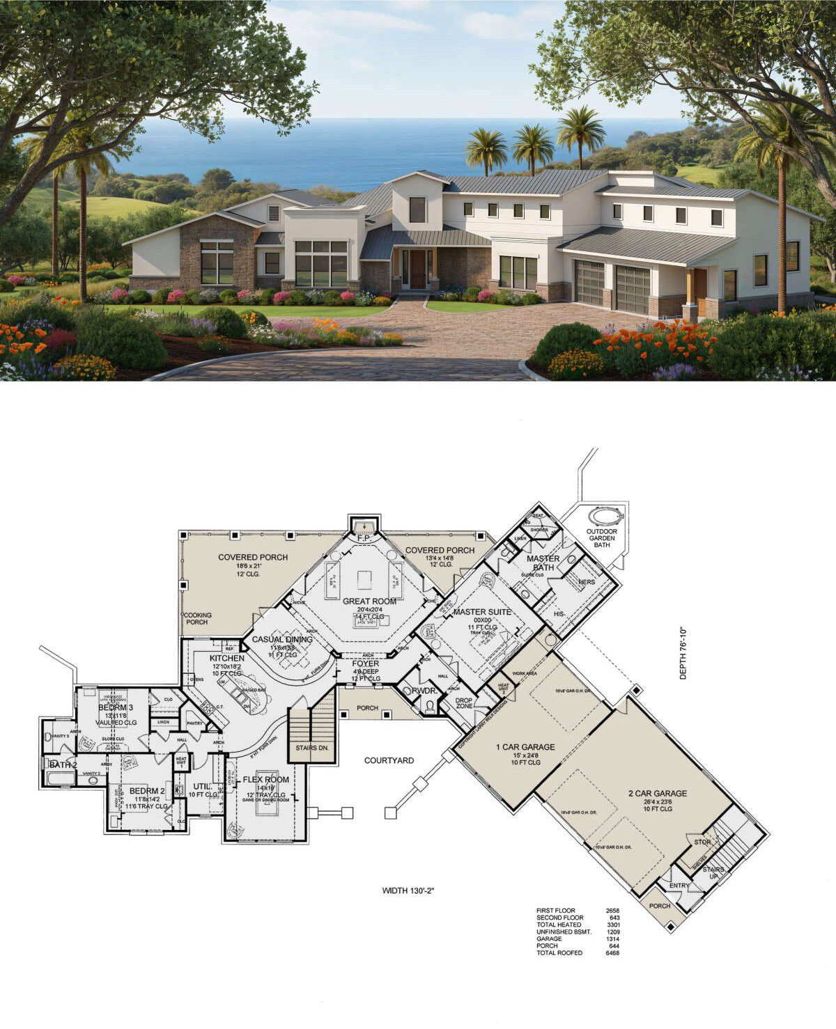 With its bold façade, deep width (~130′), and depth (~76′), it’s designed for modern living with an eye for sharp aesthetics.