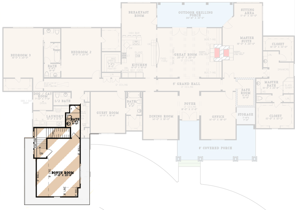 - Flexible bonus space over the garage allows for future expansion.