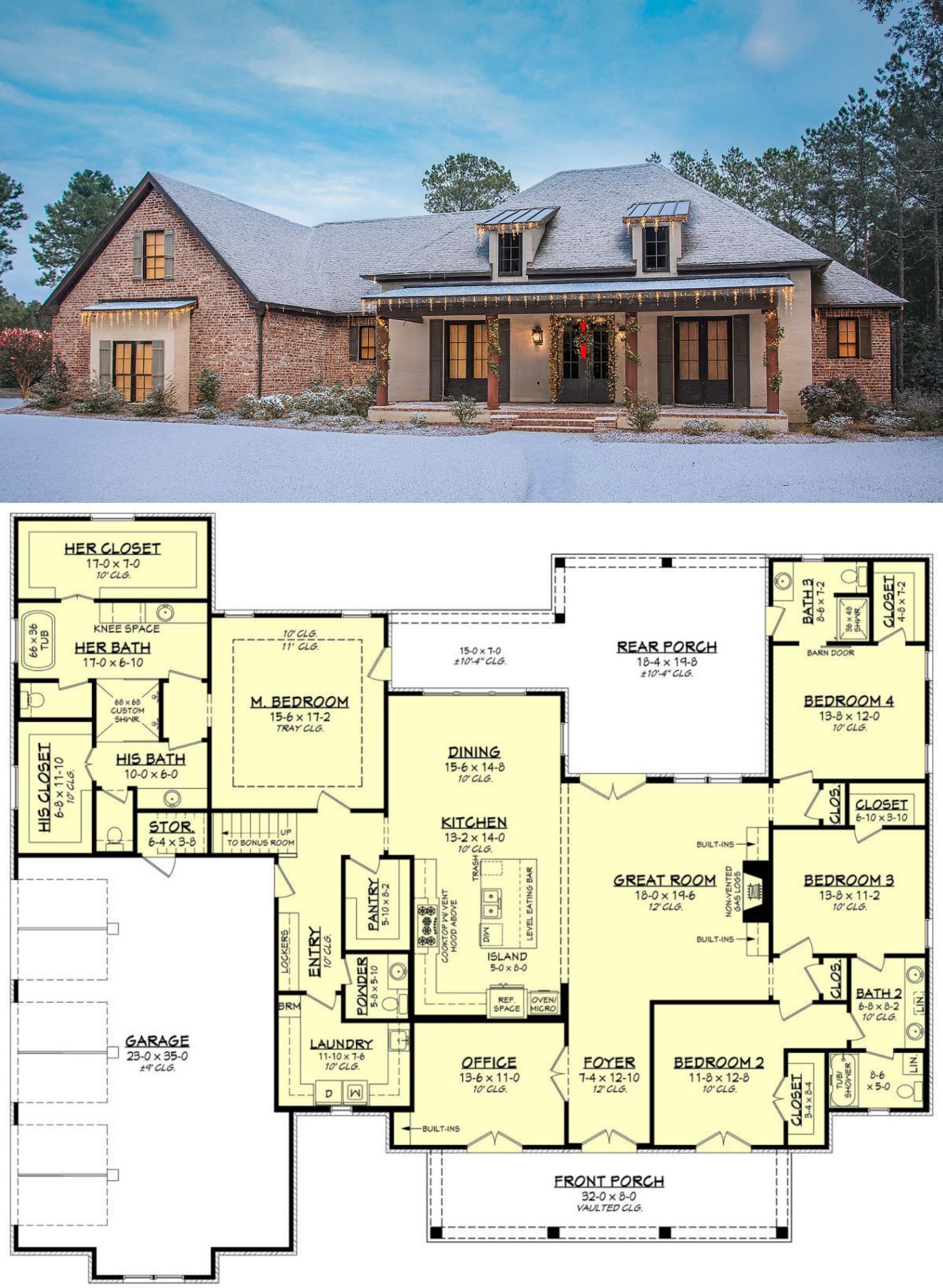 The bonus room above the garage adds adaptability: as children grow, needs change, or hobbies evolve, the extra space gives room to expand without moving house. The generous garage and storage options make the plan practical for families with cars, gear, and active lifestyles.