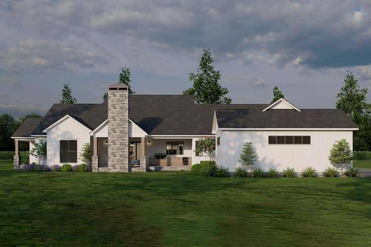 This balanced modern farmhouse offers a mix of farmhouse charm, practical layout, and flexible living space — making it ideal for families, couples who host, or anyone wanting a home ready for everyday life and occasional entertaining. The split layout provides privacy where it matters, while the open living/kitchen/great room and outdoor porch encourage togetherness and relaxed living. And with a big garage and generous storage, it fits a modern lifestyle without overbuilding. 8“`9