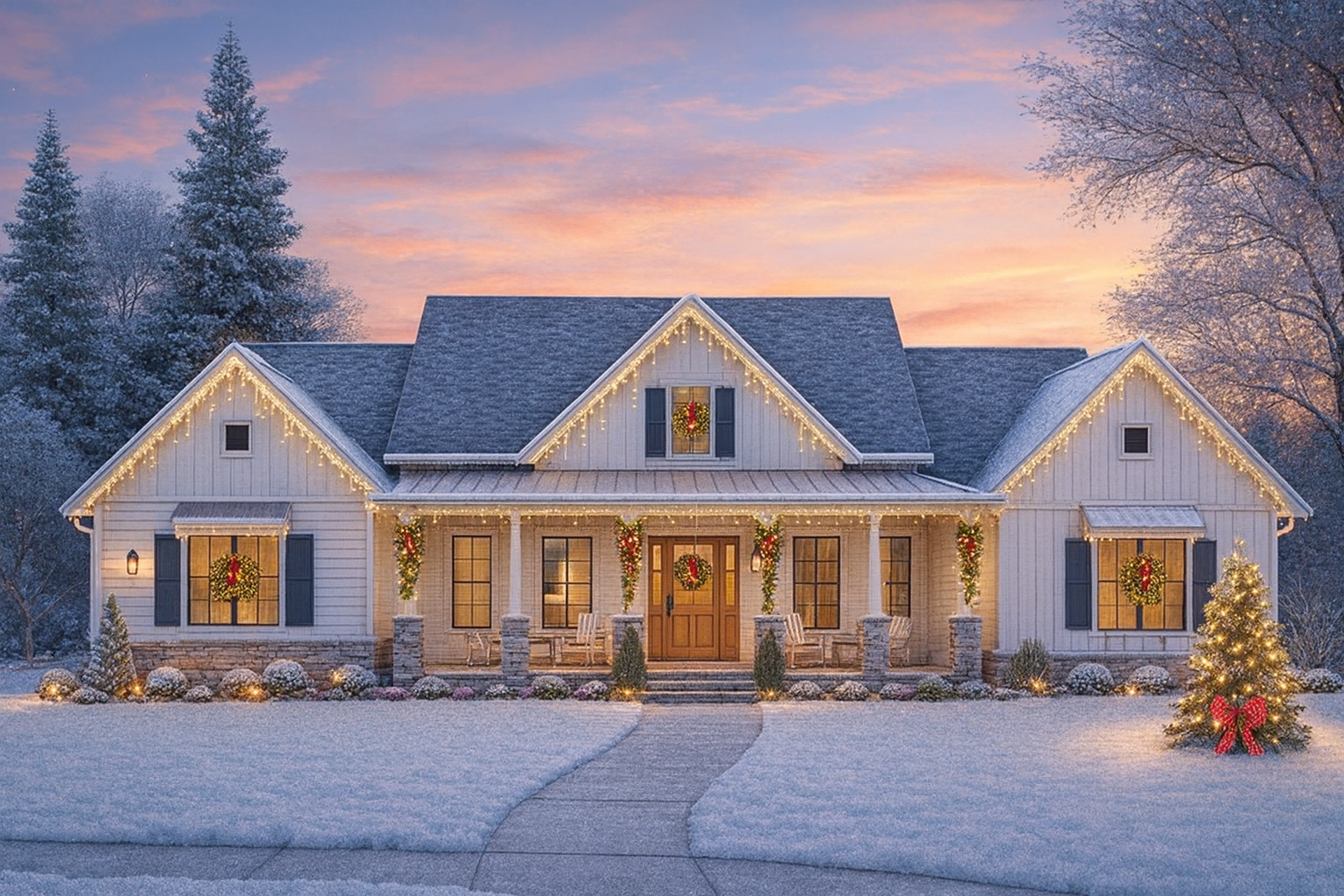 This balanced modern farmhouse offers a mix of farmhouse charm, practical layout, and flexible living space — making it ideal for families, couples who host, or anyone wanting a home ready for everyday life and occasional entertaining. The split layout provides privacy where it matters, while the open living/kitchen/great room and outdoor porch encourage togetherness and relaxed living. And with a big garage and generous storage, it fits a modern lifestyle without overbuilding. 8“`9