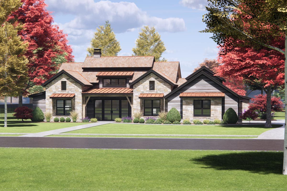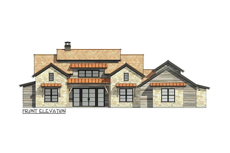 This 2,854-square-foot single-level house plan brings together modern-farmhouse / Hill-Country style with practical, well-thought-out living spaces.