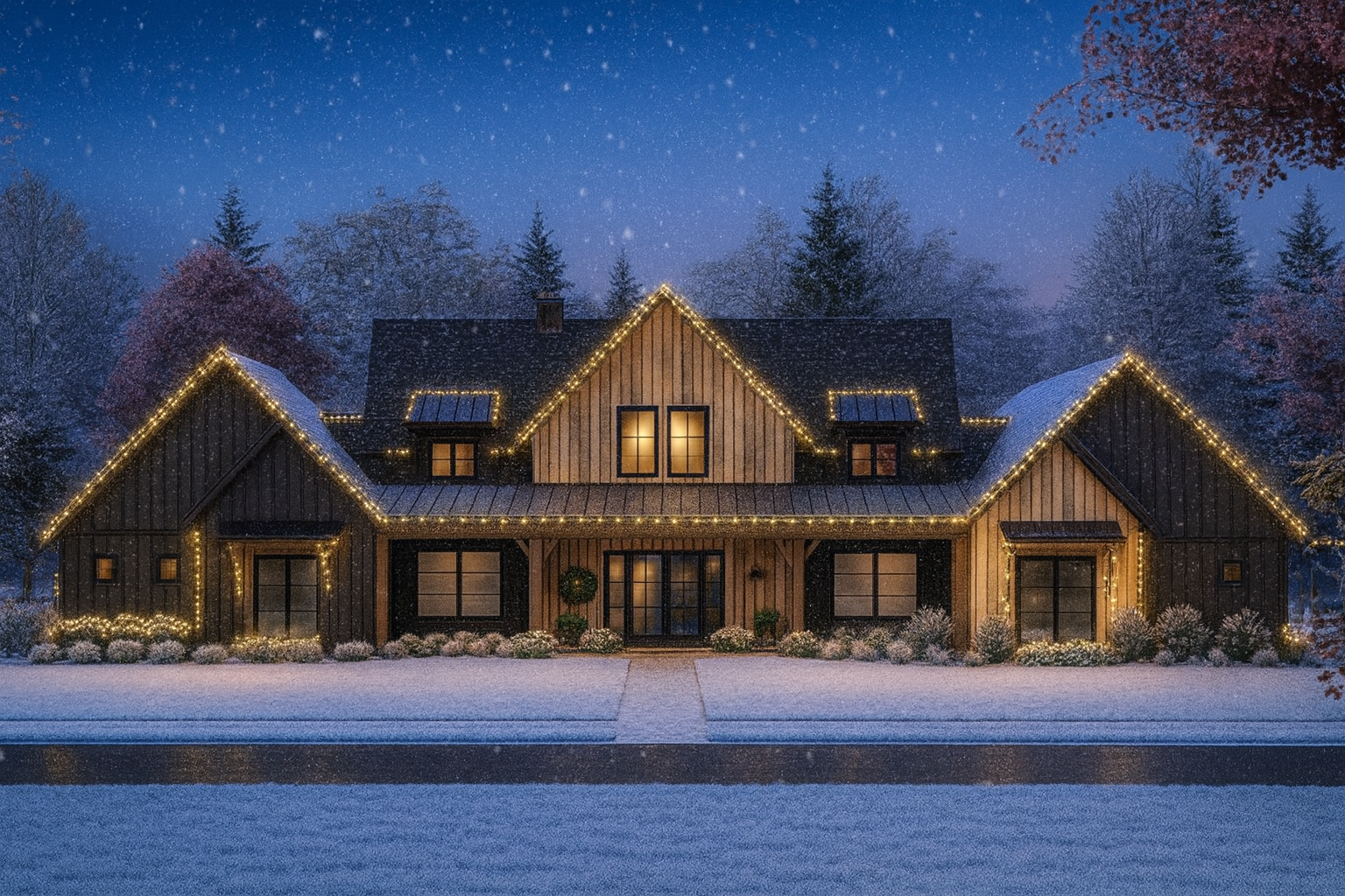 The combination of traditional farmhouse lines with contemporary proportions makes this home look at home on a rural lot or suburban plot — grounded, welcoming, and stylish.