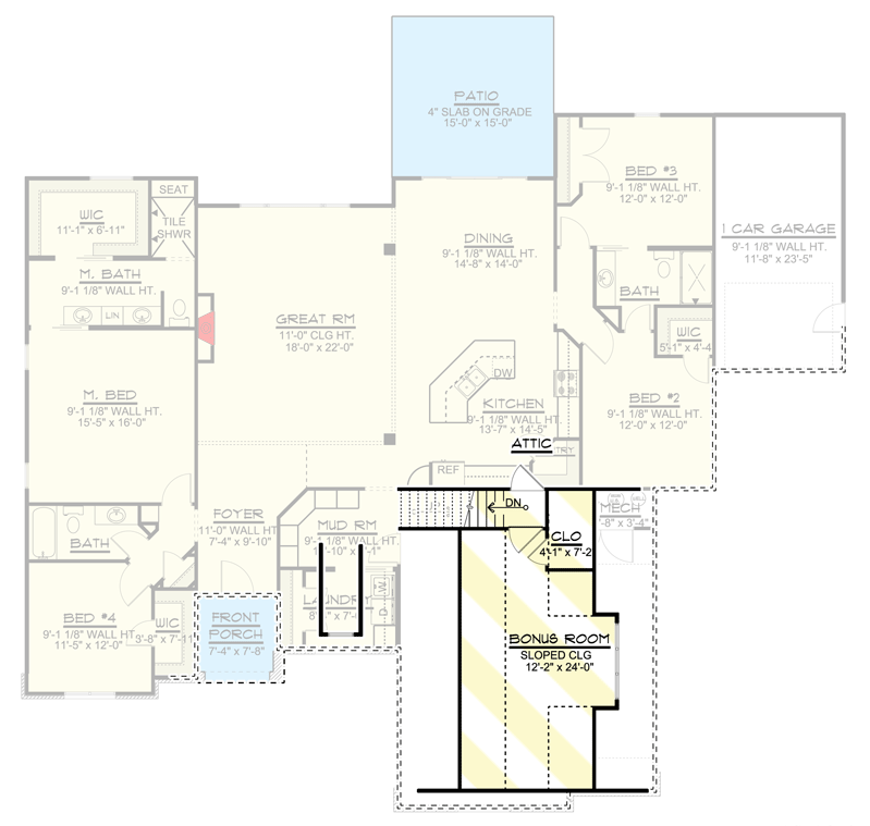 | Stories | Single-story main level + bonus room above garage 4 |