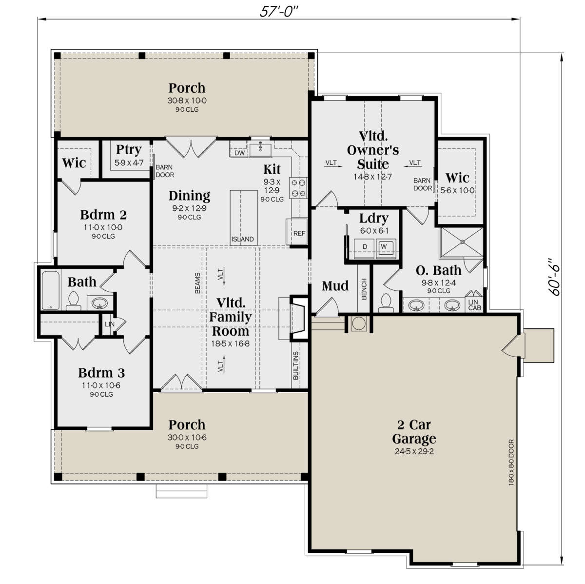 This beautifully crafted modern farmhouse plan combines efficiency with timeless design, delivering a cozy yet functional home perfect for growing families, downsizers, or anyone seeking a simplified lifestyle. With a compact 57′ x 60’6″ layout, this home proves that comfort and practicality can fit perfectly within a modest footprint.