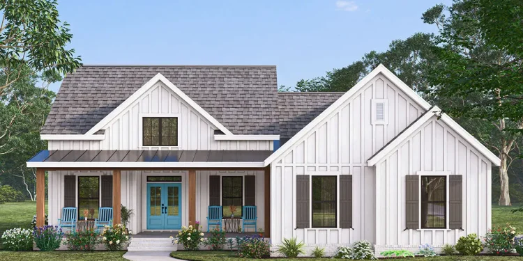 This plan is a smart solution for families or individuals seeking simplicity without sacrificing comfort or style. Its open-concept design, practical bedroom layout, and charming porches offer everything you need in a modern farmhouse — in a size that’s affordable and manageable.