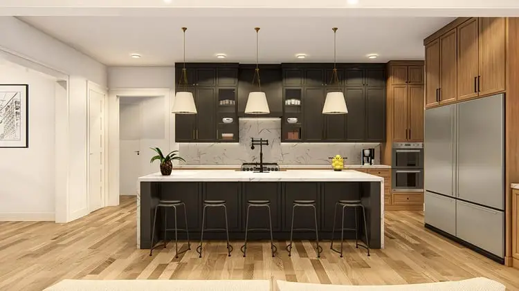 The heart of the home is the open plan connecting a spacious living area, chef’s kitchen with a central island, and formal dining. Tray or coffered ceilings elevate the ambiance, flowing seamlessly into the rear porch and outdoor cooking zone 2.