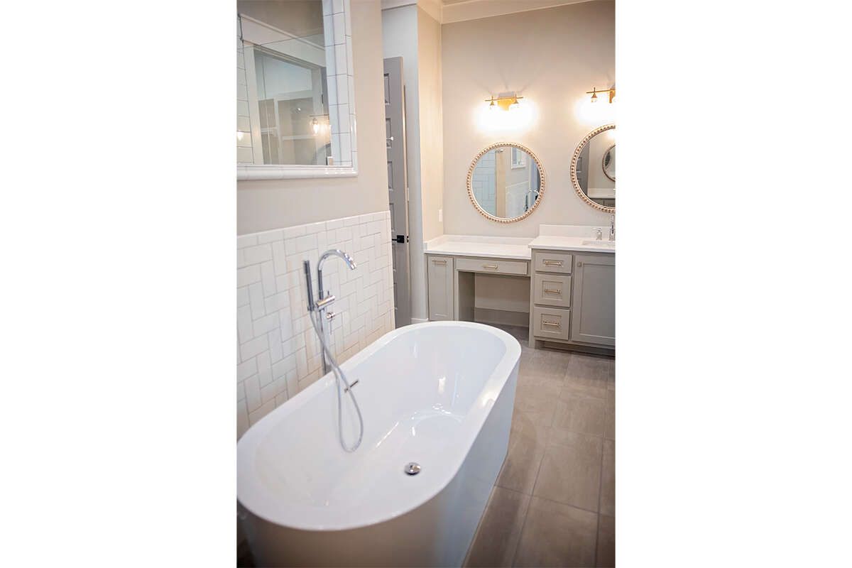 Set apart from the other bedrooms, the primary suite offers a private escape with rear porch access and large windows that bring the outdoors in. The ensuite bathroom includes dual vanities, a soaking tub, a separate shower, and a generous walk-in closet—combining luxury with functionality in a peaceful setting.