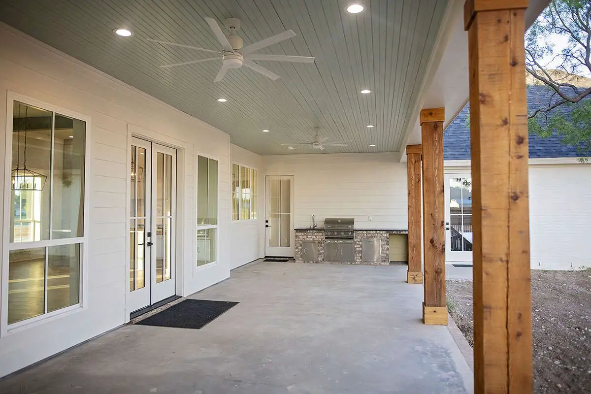 The wide front porch offers a classic farmhouse welcome and the perfect place to sit and enjoy peaceful mornings. Around back, an expansive covered rear porch creates a true outdoor living room—ideal for entertaining, grilling out, or relaxing in the shade. With plenty of space for furniture and a beautiful connection to the backyard, this porch is ready for year-round use.