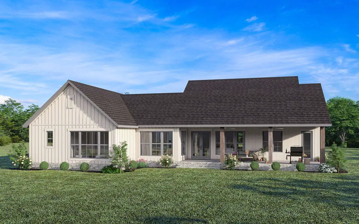 The covered rear porch is made for grilling, chilling, or just unwinding with a drink at the end of the day. It’s spacious enough for a dining set, some lounge chairs, and a few of your favorite potted plants. Add a ceiling fan and it becomes your go-to spot from spring through fall.