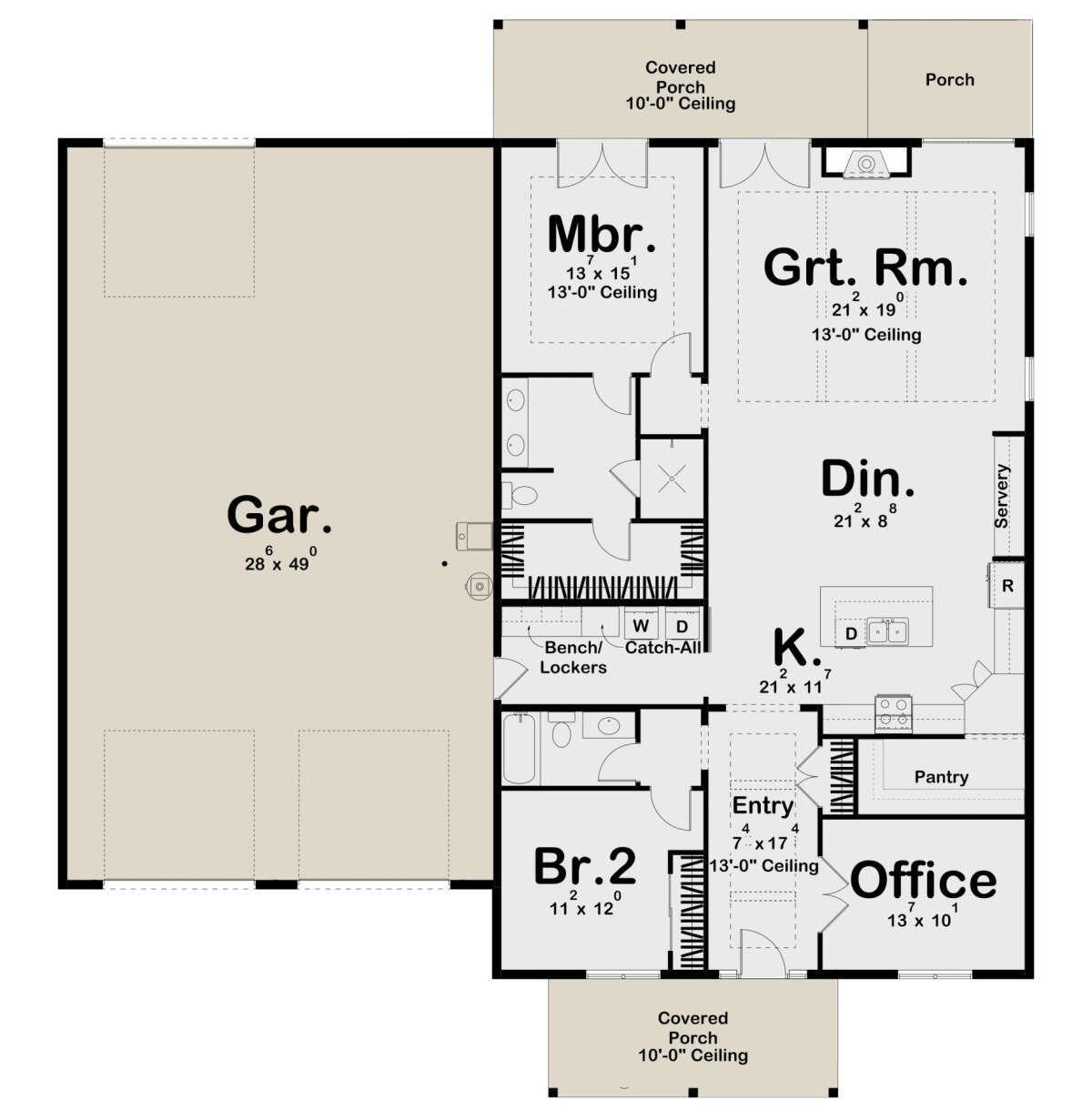 - Ceiling Height: 12′ main floor