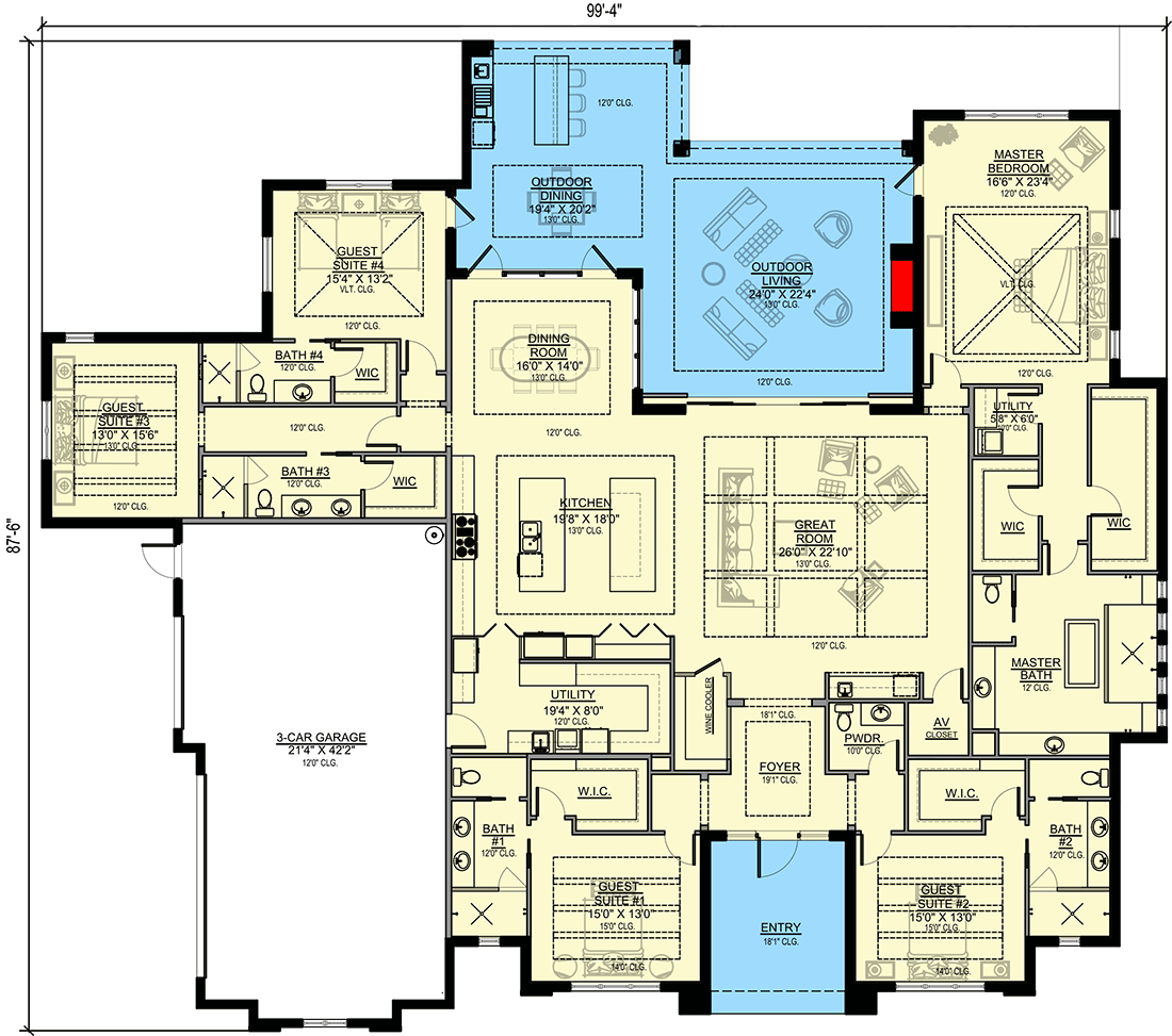 Contemporary Florida Home Plan with Grand Outdoor Living Area Heated S.F. 4,511