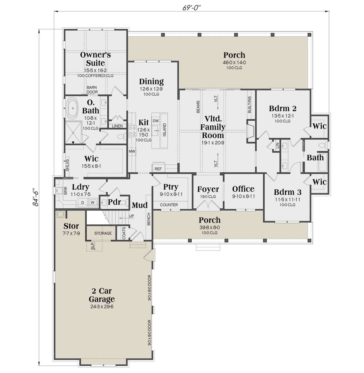 Estimating construction costs for this approximately 2,469 square foot modern farmhouse in the United States depends on regional labor rates, material selections, and the level of finishes you choose. In many regions with moderate labor costs and standard materials, base construction for a home of this size typically falls into a mid-range budget relative to national averages. Choosing upgraded finishes such as custom cabinetry, premium flooring, stone or accent features, and high-performance systems will increase the overall investment. Labor costs in metropolitan or high-demand regions tend to be higher than in rural areas. Architectural features such as vaulted ceilings, expansive porch areas, and flexible bonus spaces may also contribute to framing and finishing costs. Site conditions, foundation type, and desired landscaping further influence total project expenses. Collaborating early with a local builder helps align your design priorities with realistic budgeting and ensures a successful build that meets both functional needs and aesthetic expectations.