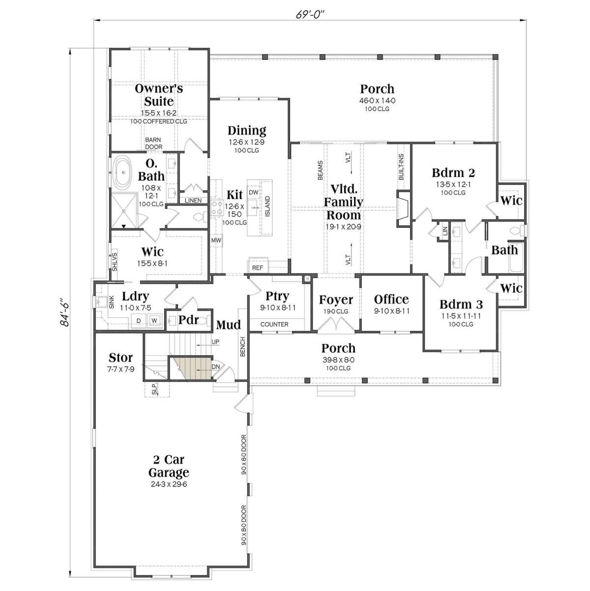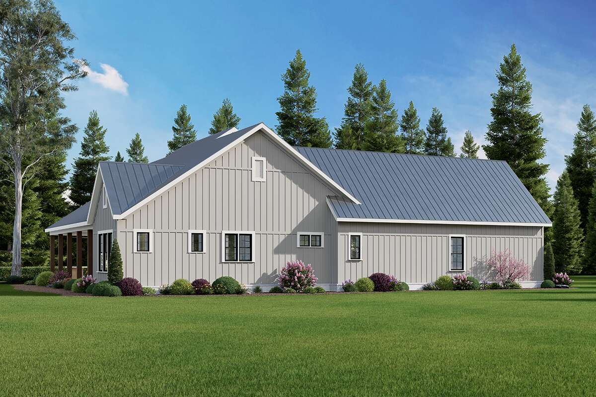 This modern farmhouse plan appeals to homeowners who appreciate open shared spaces, adaptable layouts, and a connection between inside and outside living. The arrangement of public and private areas supports both lively gatherings and peaceful retreats, making the home suitable for a range of lifestyles. Architectural details such as vaulted ceilings, the welcoming porch, and thoughtful transitions between zones give the design a sense of charm and intentional planning. Whether entertaining guests, working from home, or enjoying family time, this plan makes everyday life feel connected, comfortable, and inspiring.