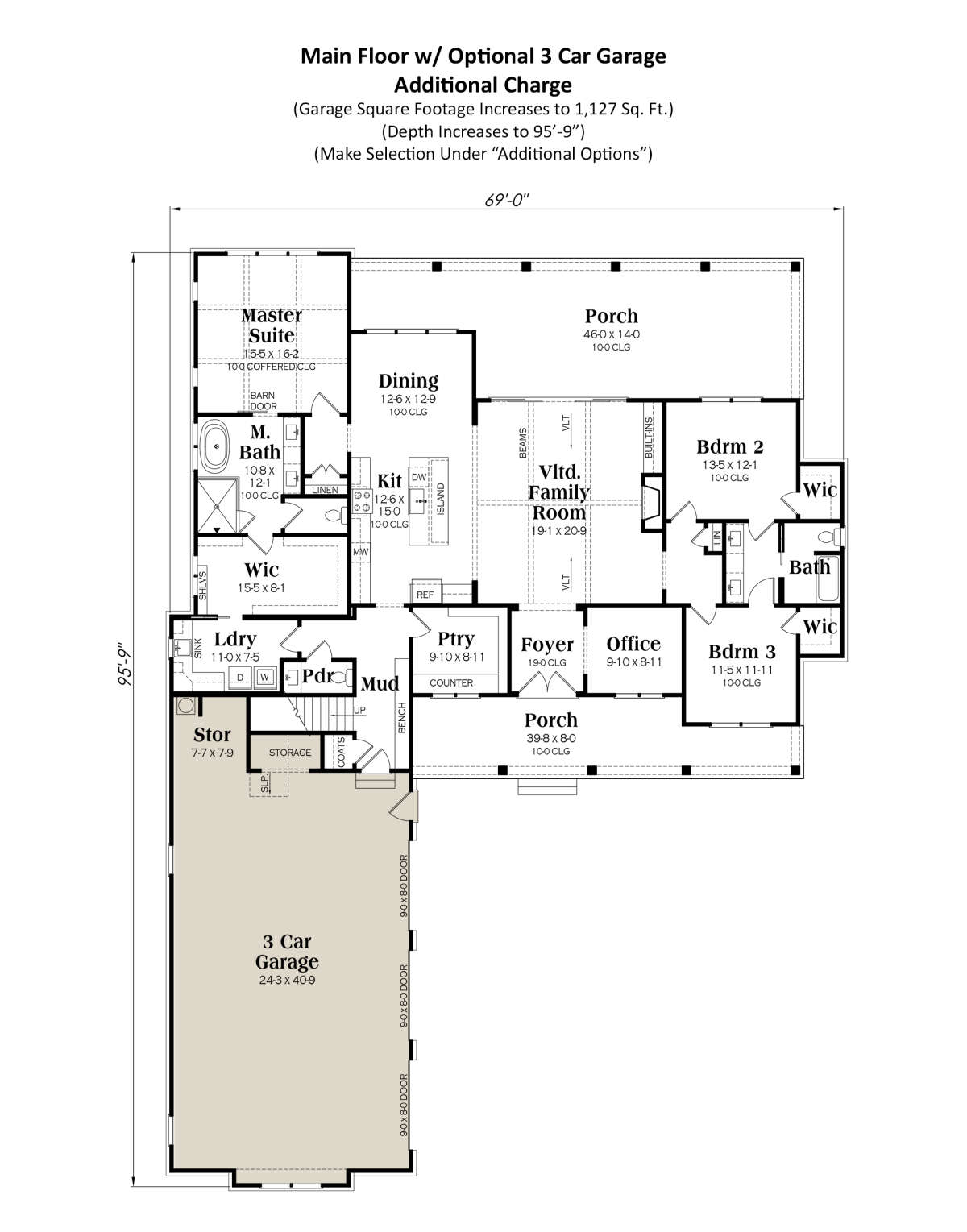 This farmhouse plan includes flexible space that can be adapted to suit your lifestyle. Whether finished as a bonus room, home office, play area, or media room, this space adds meaningful square footage without compromising the logical flow of the home. Its location near the main living zones makes it easily accessible while creating a distinct area for focused activities or additional accommodations as needed.