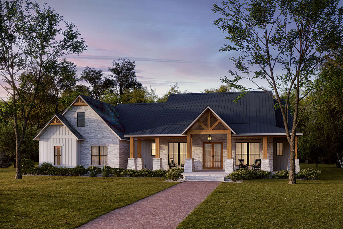 This thoughtfully laid-out Craftsman home offers approximately 2,961 square feet of living space that blends traditional charm with modern functionality. With four bedrooms, three and a half baths, generous shared living areas, and flexible zones for work or play, this plan supports comfortable everyday living and gracious entertaining. Architectural details like a welcoming covered porch, rich trim elements, and balanced proportions create a home that feels both refined and inviting.