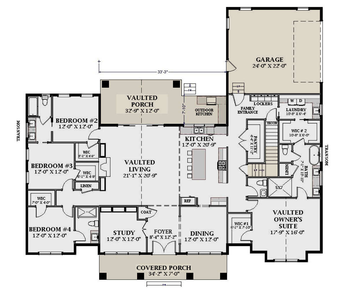 Estimating construction costs for this approximately 2,985 square foot modern farmhouse in the United States depends on several factors including regional labor rates, material selections, and the level of finishes you choose. In regions with moderate labor costs and standard materials, base construction for a home of this size typically falls into a mid-range budget category. Upgrading to premium finishes such as custom cabinetry, high-end fixtures, and stone or specialty exterior materials will increase the investment. Labor costs in urban or high-demand regions are generally higher than in rural markets. Architectural features such as vaulted ceilings, covered outdoor living areas, and integrated bonus spaces contribute to framing and finishing costs. Site conditions, foundation requirements, and landscaping preferences also influence total project costs. Early collaboration with a local builder helps align your design aspirations with realistic budgeting and ensures your home is executed to meet both functional needs and aesthetic expectations.