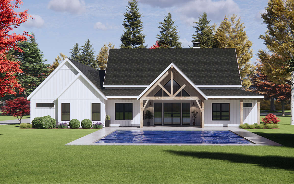 Estimating the construction cost for this approximately 3,000 square foot modern farmhouse in the United States depends on regional labor rates, material selections, and the level of finishes you choose. In areas with moderate labor costs and standard materials, base construction for a home of this size typically falls into a mid-range budget. Opting for upgraded finishes such as custom cabinetry, premium flooring, stone or specialty exterior materials, and high-performance windows will elevate the overall investment. Labor costs in metropolitan or high-demand regions are generally higher than in rural areas. Architectural features such as vaulted ceilings, covered outdoor living spaces, and flexible bonus areas contribute to framing and finishing expenses. Site conditions, foundation type, and desired landscaping also influence total project costs. Early collaboration with a local builder helps align design priorities with realistic budgeting and ensures a successful build that meets both functional and aesthetic expectations.