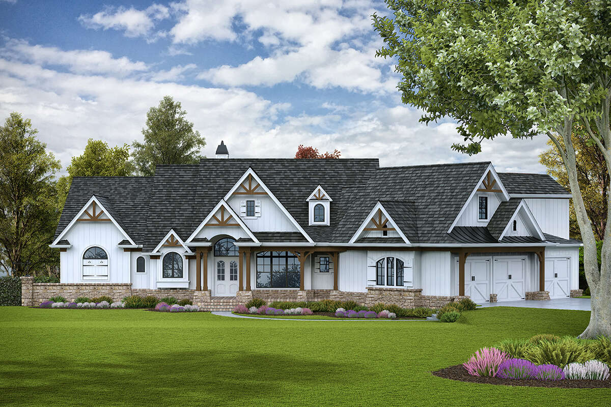 This impressive Craftsman home spans approximately 4,851 square feet of thoughtfully designed living space crafted for both daily living and elegant entertaining. Designed with five spacious bedrooms, five and a half baths, and a three-car garage, this plan blends traditional Craftsman charm with modern functional flow. Expansive living areas, multiple gathering zones, and purposeful transitions throughout create a home that feels both welcoming and refined, with plenty of room for family life, guests, and personalized spaces for work and relaxation.