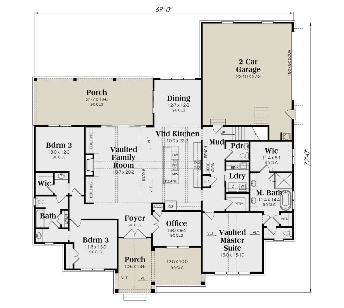 Additional design features such as an office near the foyer, ample closet space, and efficient circulation paths ensure the home remains functional and comfortable for long-term living.