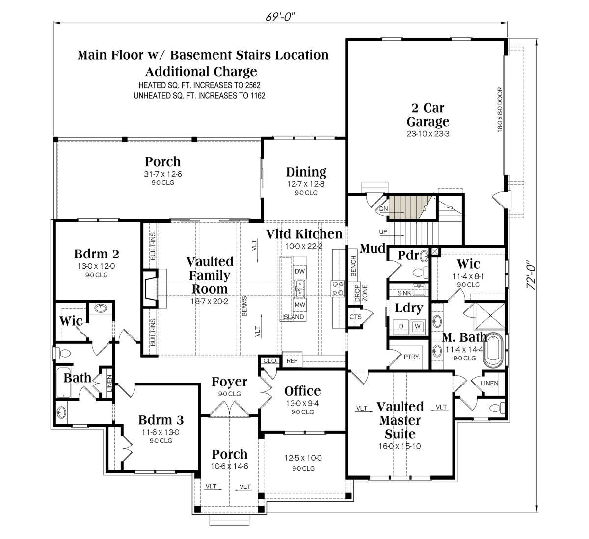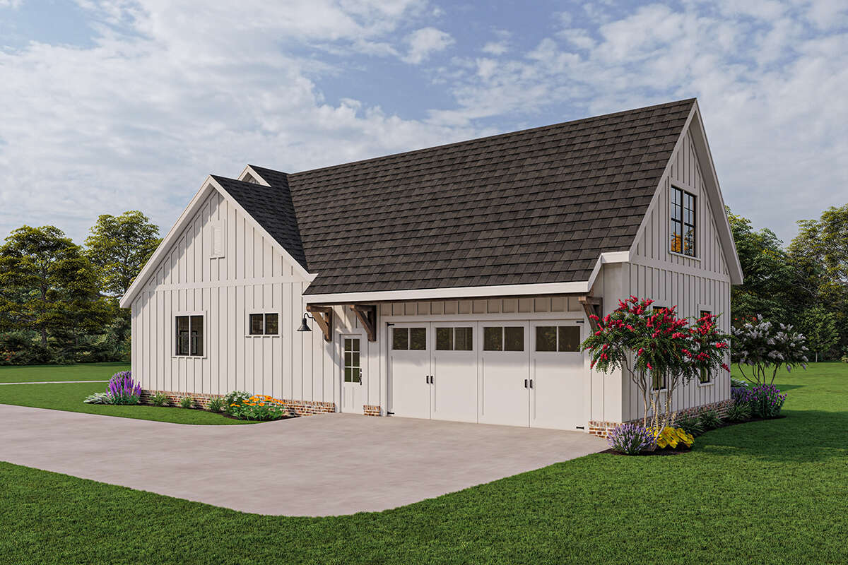 This modern farmhouse plan offers a lifestyle centered on comfort, flexibility, and connection. Spacious open living areas encourage family interaction and entertaining, while the split-bedroom layout ensures private retreats for relaxation. The inclusion of flexible spaces such as the office and optional bonus room allows the home to evolve alongside changing household needs.