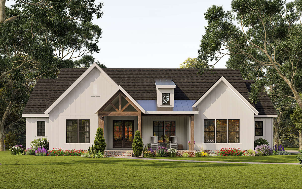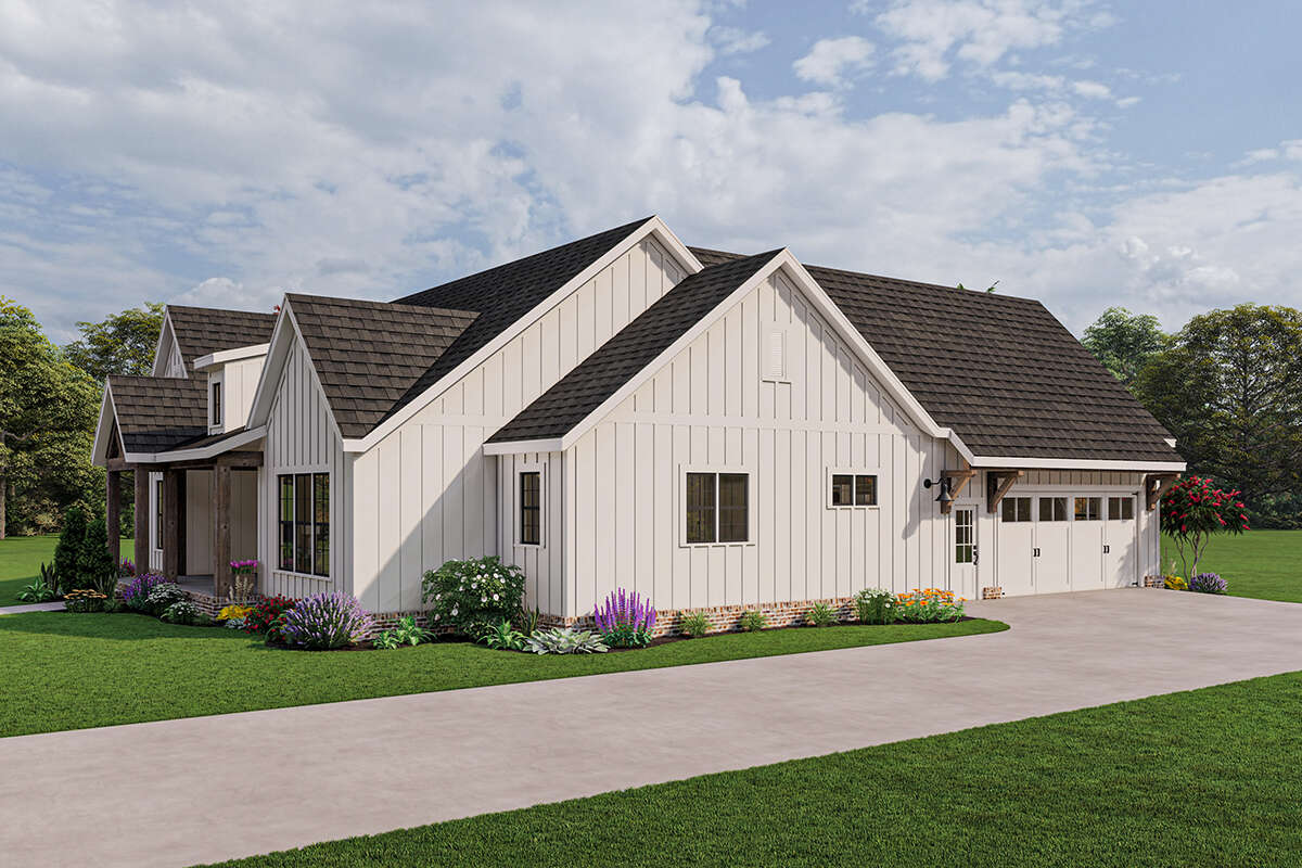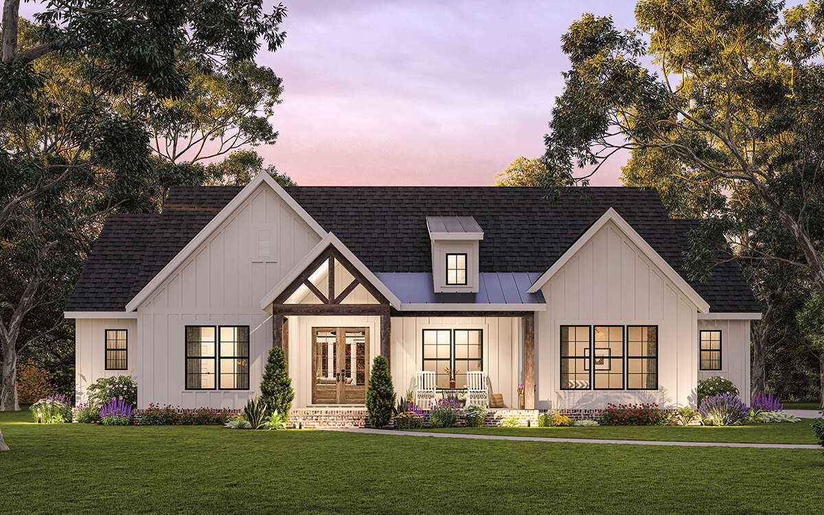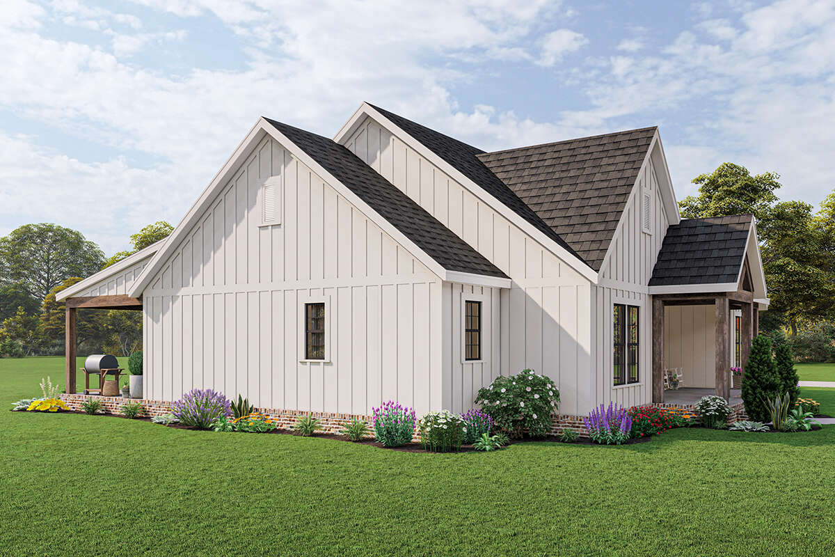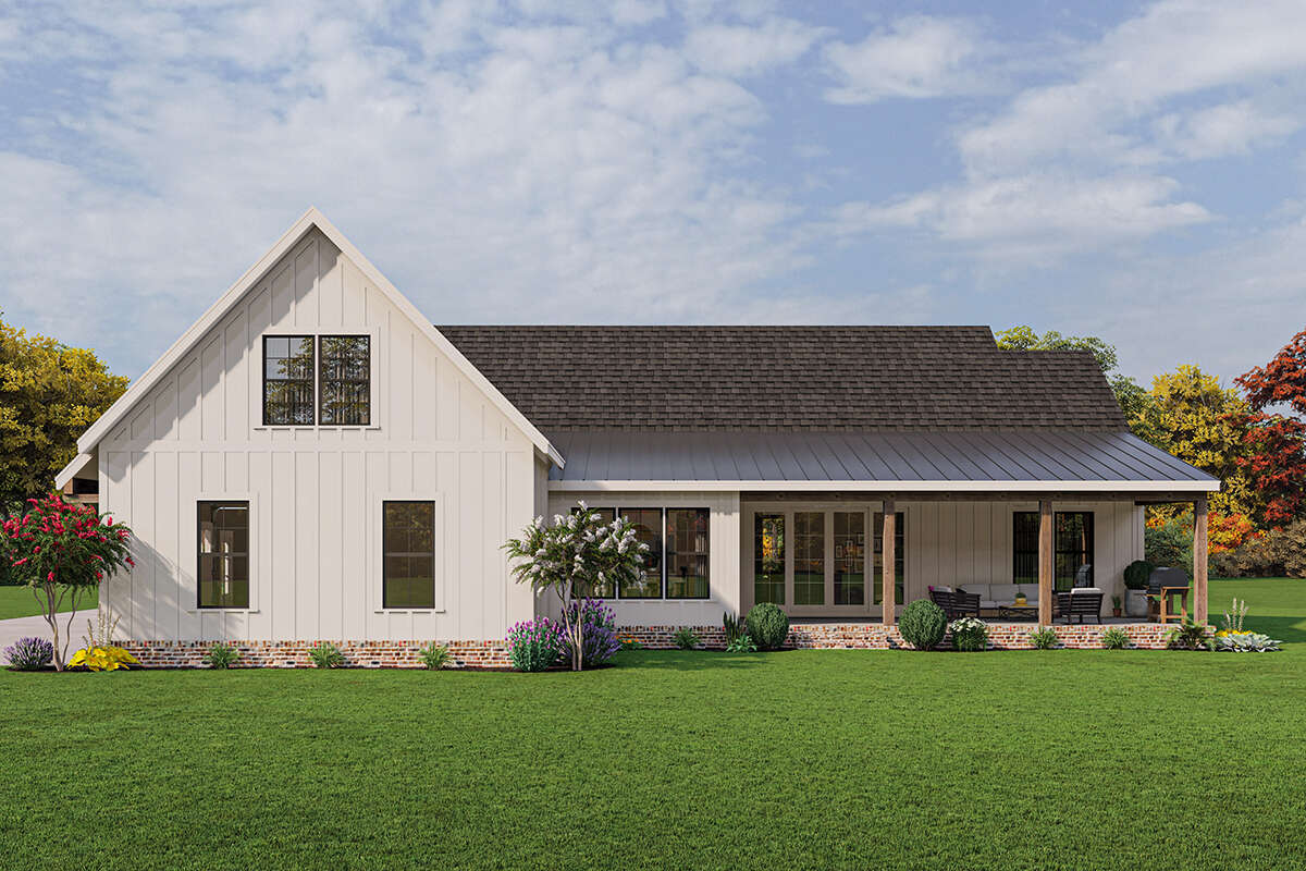 Outdoor living is an important feature of this modern farmhouse design. The covered front porch provides a welcoming outdoor space for relaxing or greeting guests, while the rear porch creates an ideal setting for outdoor dining and entertaining. Together, these areas extend the home’s living space and encourage a seamless connection between indoor comfort and the surrounding landscape. :contentReference[oaicite:8]{index=8}