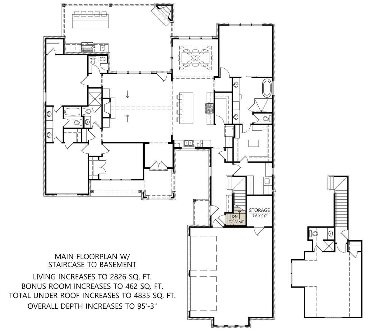 An optional bonus room provides additional flexibility within the home. This space can be adapted to suit a variety of needs such as a media room, play area, home office, or guest suite. The inclusion of this bonus space allows homeowners to personalize the design according to their lifestyle while maintaining the efficient flow of the main living areas.