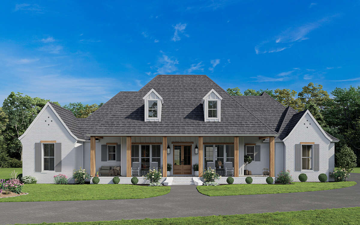 This modern farmhouse design appeals to homeowners who want both openness and flexibility. Large communal areas make gatherings comfortable and welcoming, while private bedrooms and optional bonus spaces allow the home to adapt to changing family needs. The combination of farmhouse charm and modern planning ensures the home remains both stylish and highly livable.