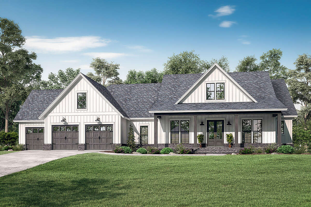 2290 sq ft New American Farmhouse Plan with Brick and Board and Batten Exterior