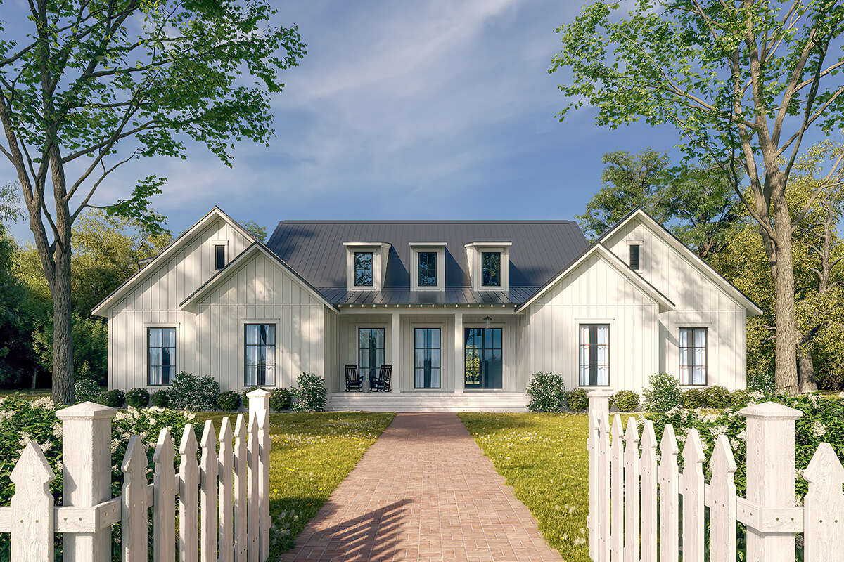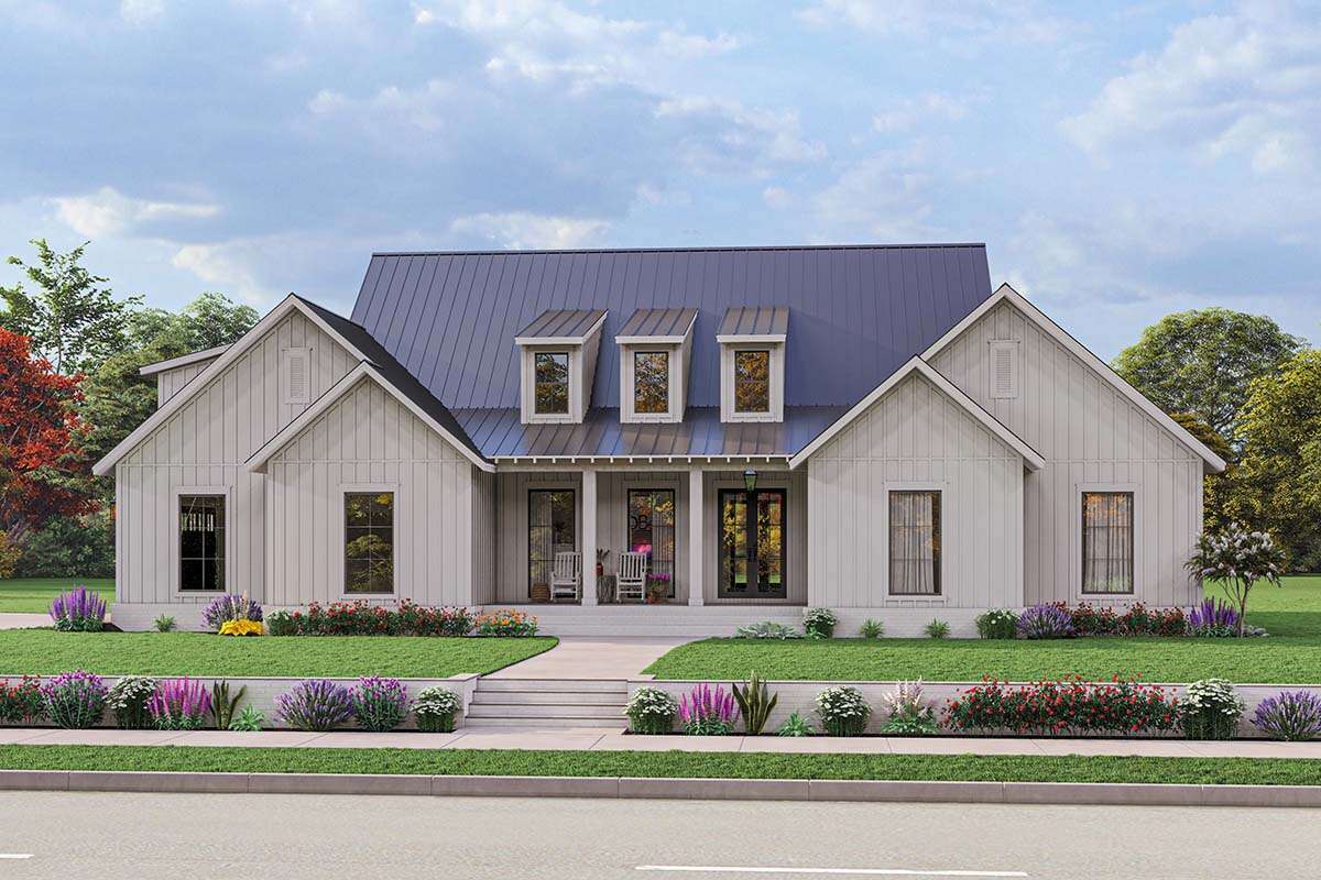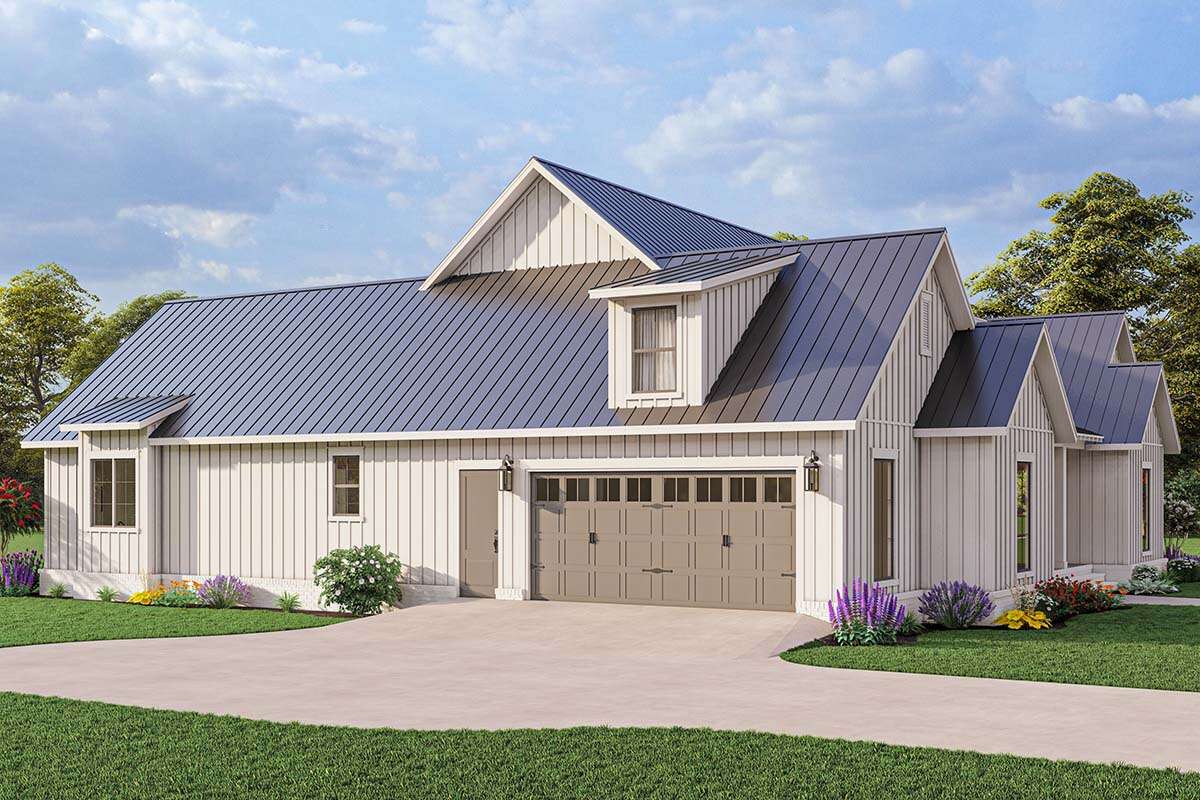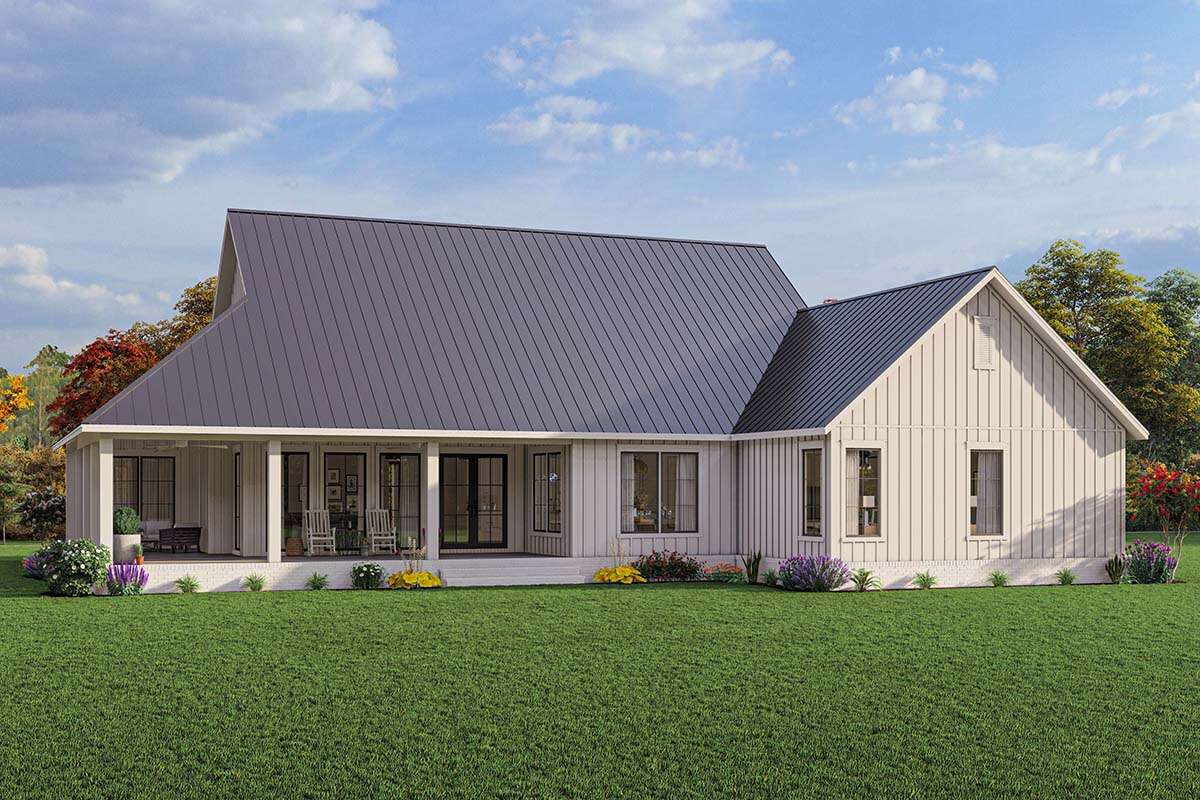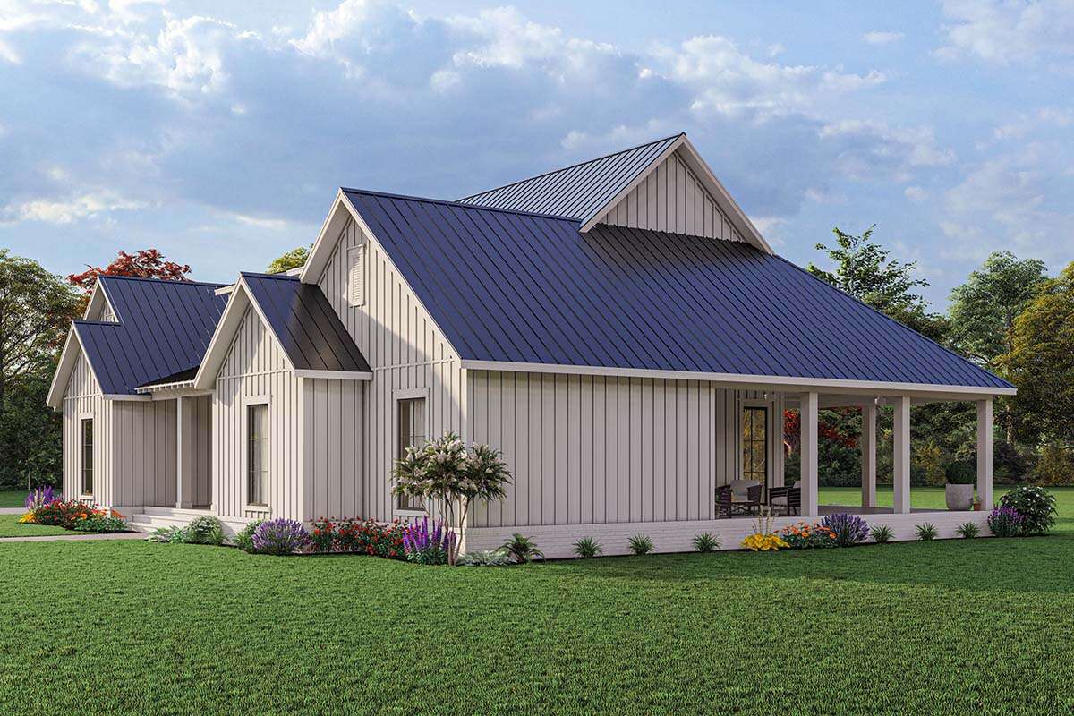 This modern farmhouse house plan offers a lifestyle centered around comfort, flexibility, and welcoming design. The open living areas encourage family interaction and entertaining, while the private bedroom arrangement ensures peaceful retreats for rest and relaxation.