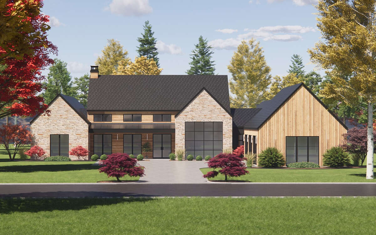 3676 sq ft Modern Transitional House Plan with 4 Bedrooms and 4.5 Bathrooms